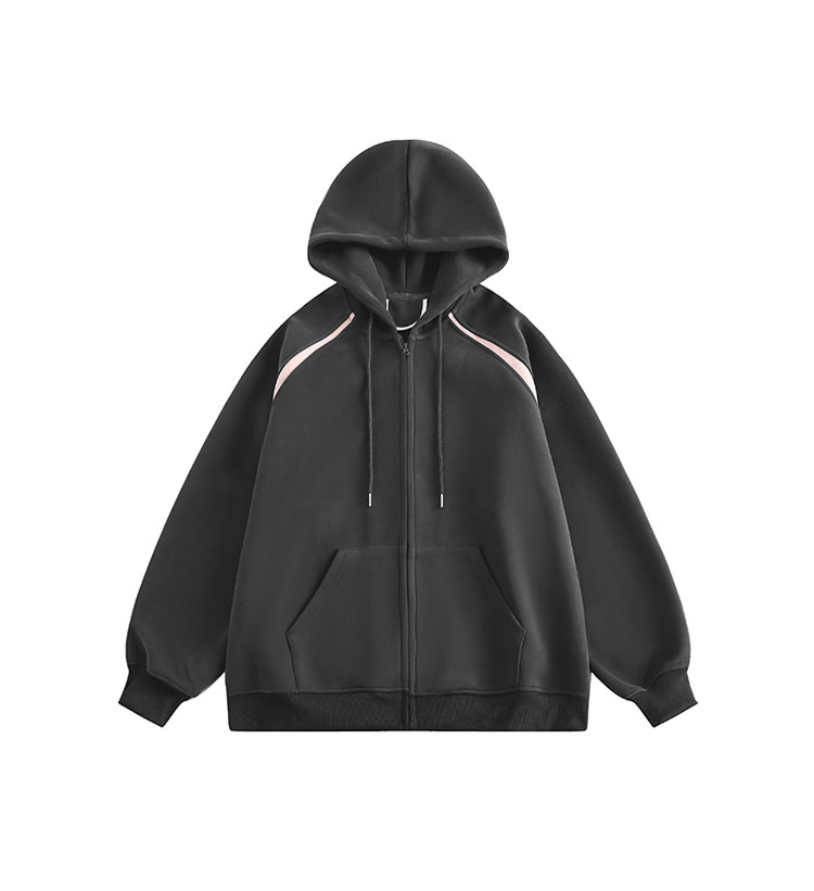 미국식 헤비 그레이 후드 스웨터 재킷 소년의 트렌디 한 브랜드 느슨한 오버 사이즈 스티칭 대비 지퍼 카디건스토어 가기