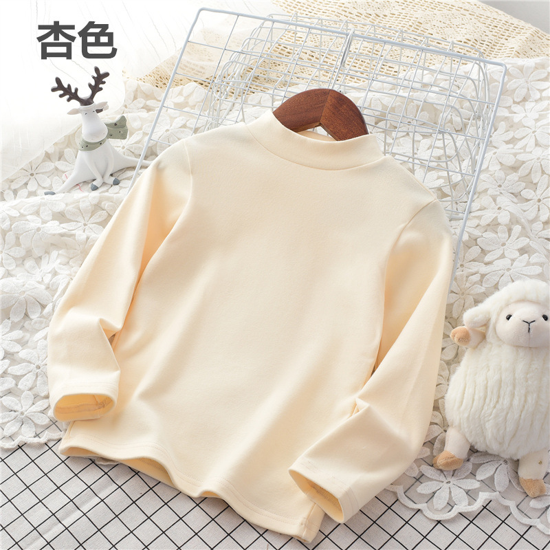 2024秋冬儿童无骨薄绒中领打底衫男女童纯色上衣宝宝弹力半高领20.5RMB立即购买>