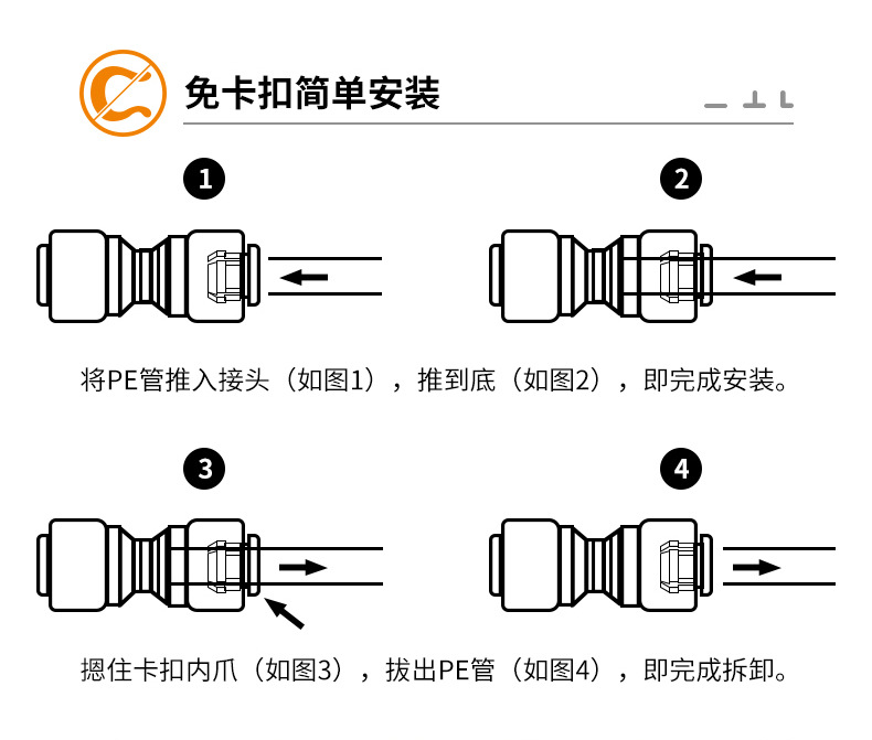 • 2분 수나사 ~ 2분 빠른 연결 엘보(흰색 발톱)