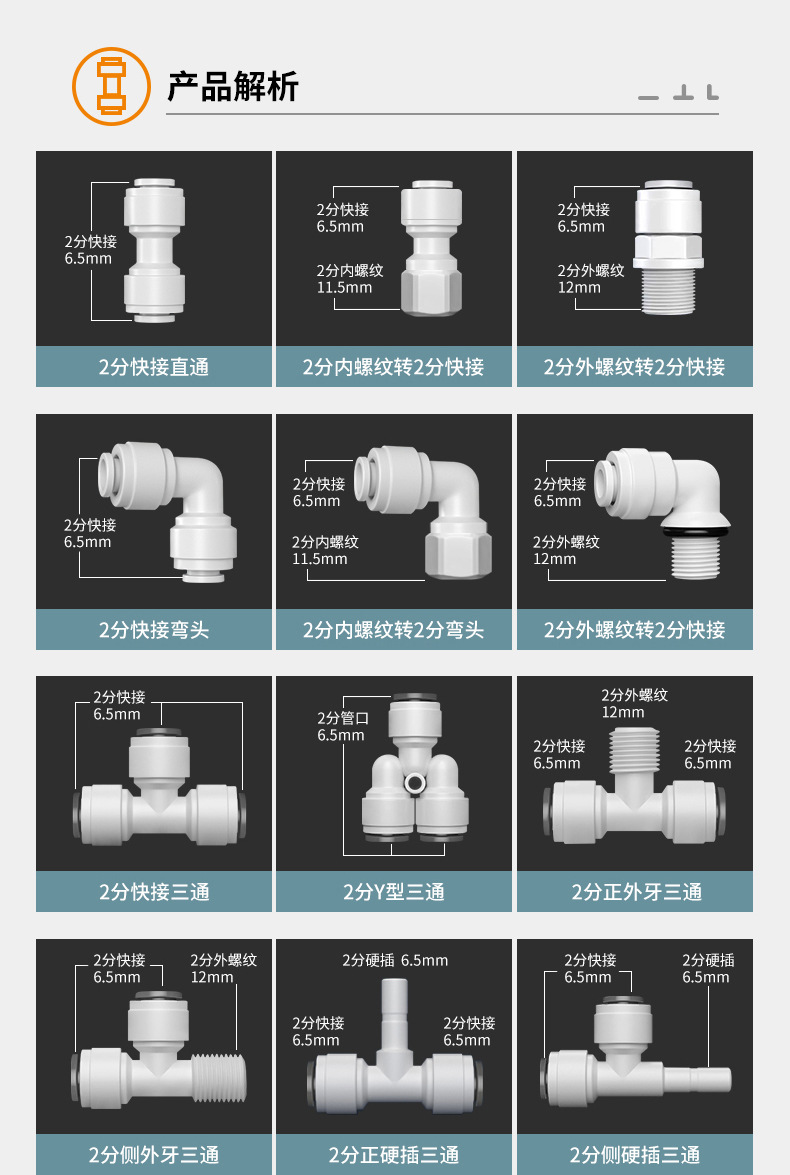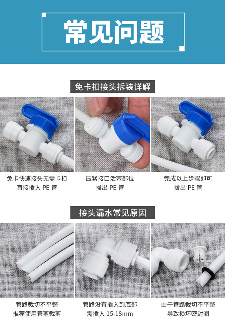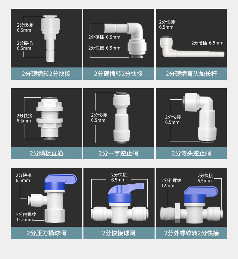 정수기 커넥터 2 빠른 커넥터 카드없는 변환 직선 팔꿈치 3 방향 볼 밸브 정수기 수관 부속품