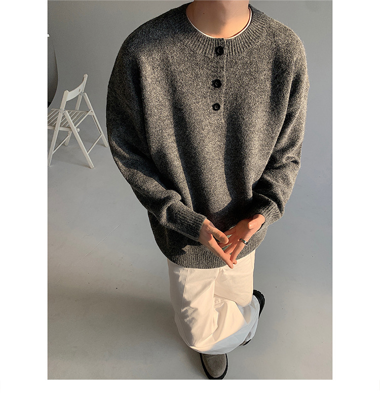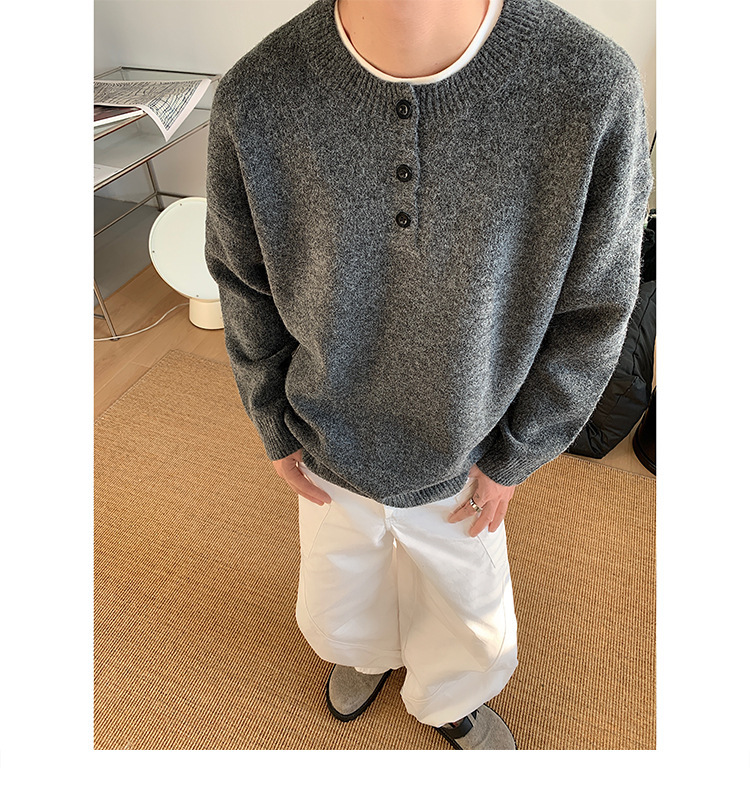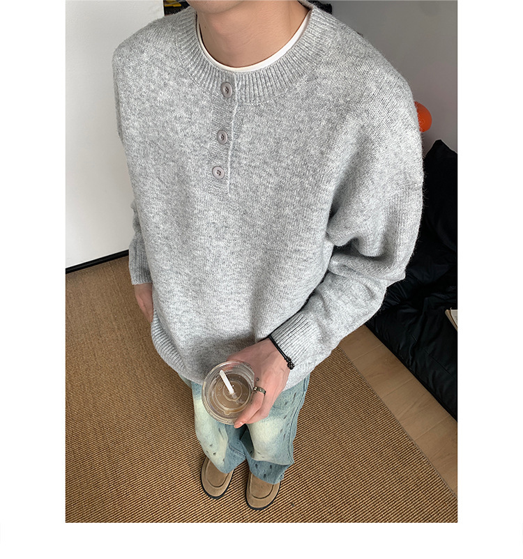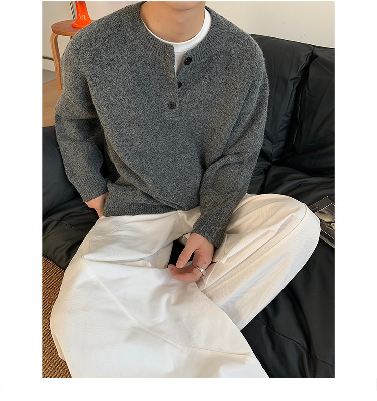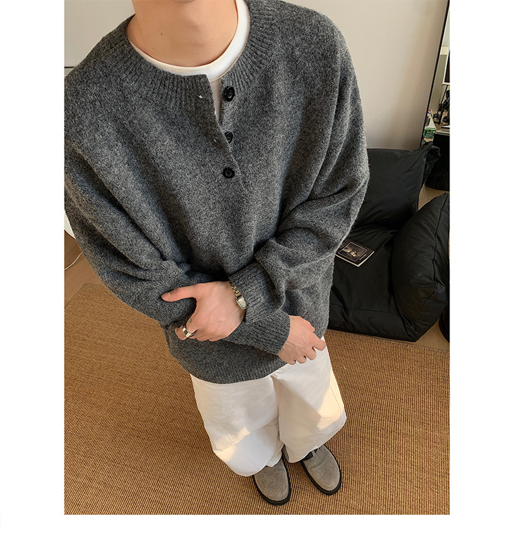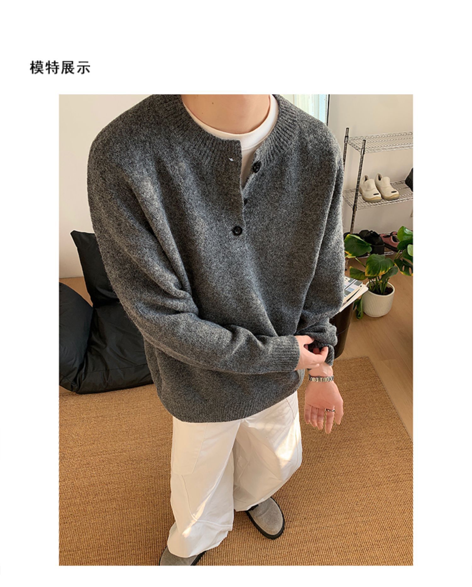 그레이 아메리칸 레트로 헨리 칼라 스웨터 남자 가을과 겨울 게으른 스타일 니트웨어 클린핏 재킷스토어 가기