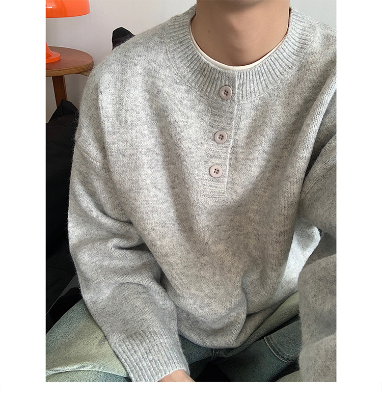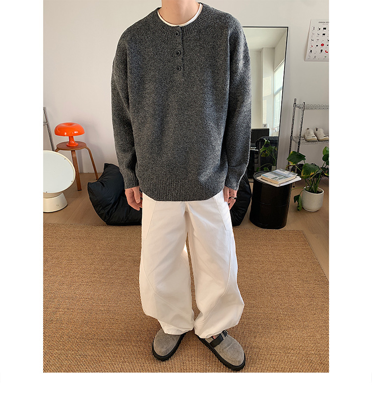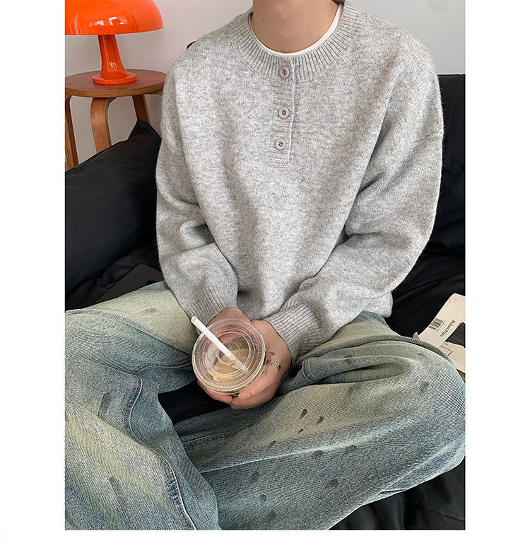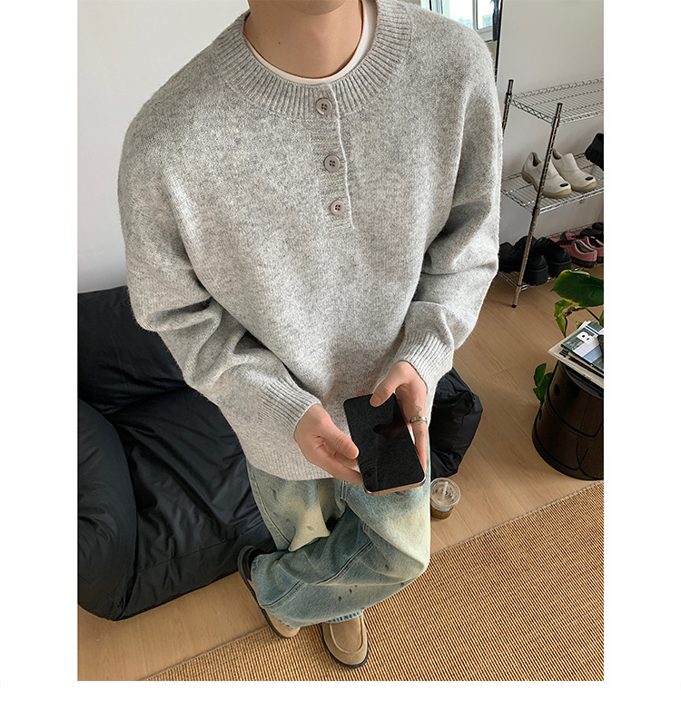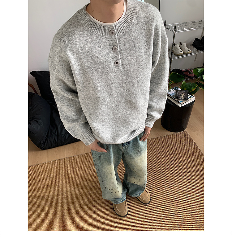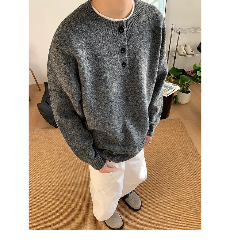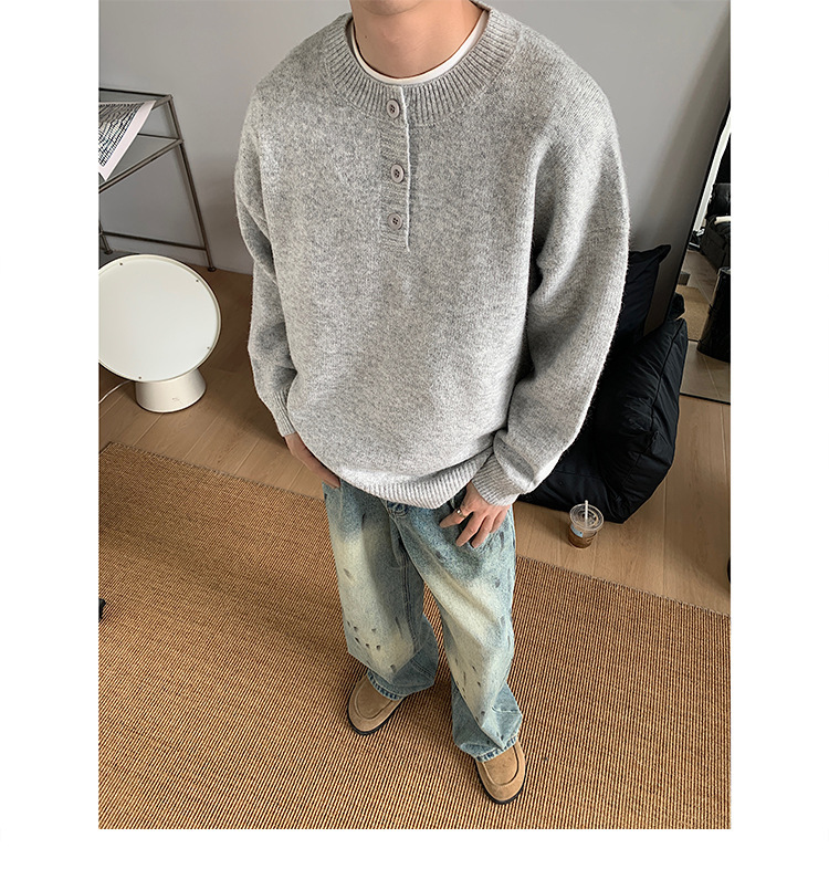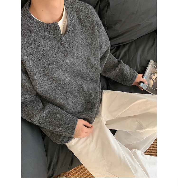 그레이 아메리칸 레트로 헨리 칼라 스웨터 남자 가을과 겨울 게으른 스타일 니트웨어 클린핏 재킷스토어 가기