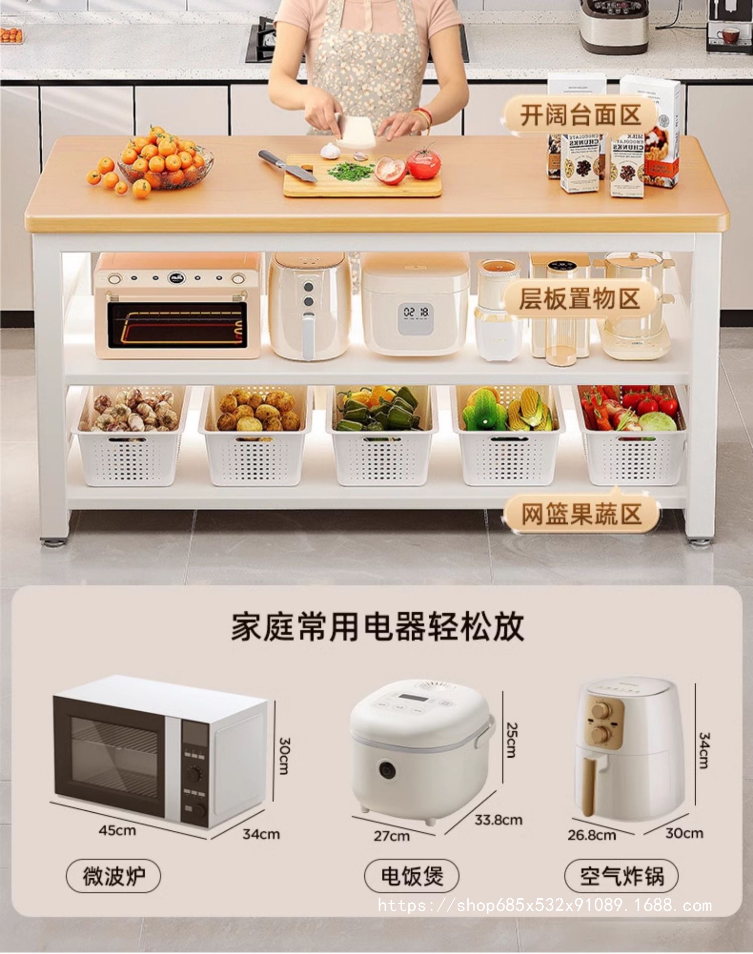 • [두꺼운 30mm 조리대] 두 번째 층은 길이 80cm, 너비 35cm, 높이 80cm입니다.