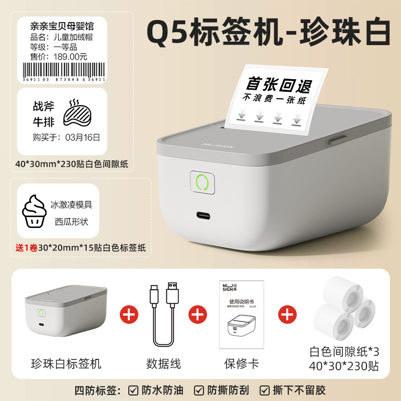 Delinius Q5 라벨 프린터 휴대용 휴대용 블루투스 열 상업 노트 이름 스티커 작은 라벨 기계스토어 가기