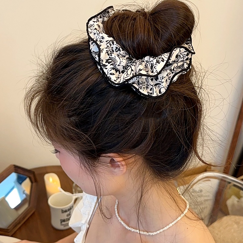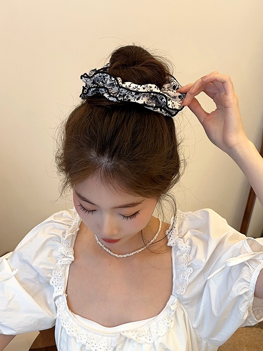 프랑스 스타일 레트로 작은 꽃 다채로운 헤어 링 여성의 더블 레이어 곰팡이 레이스 원단 헤어 로프 모든 일치 신선하고 달콤한 헤어 액세서리
