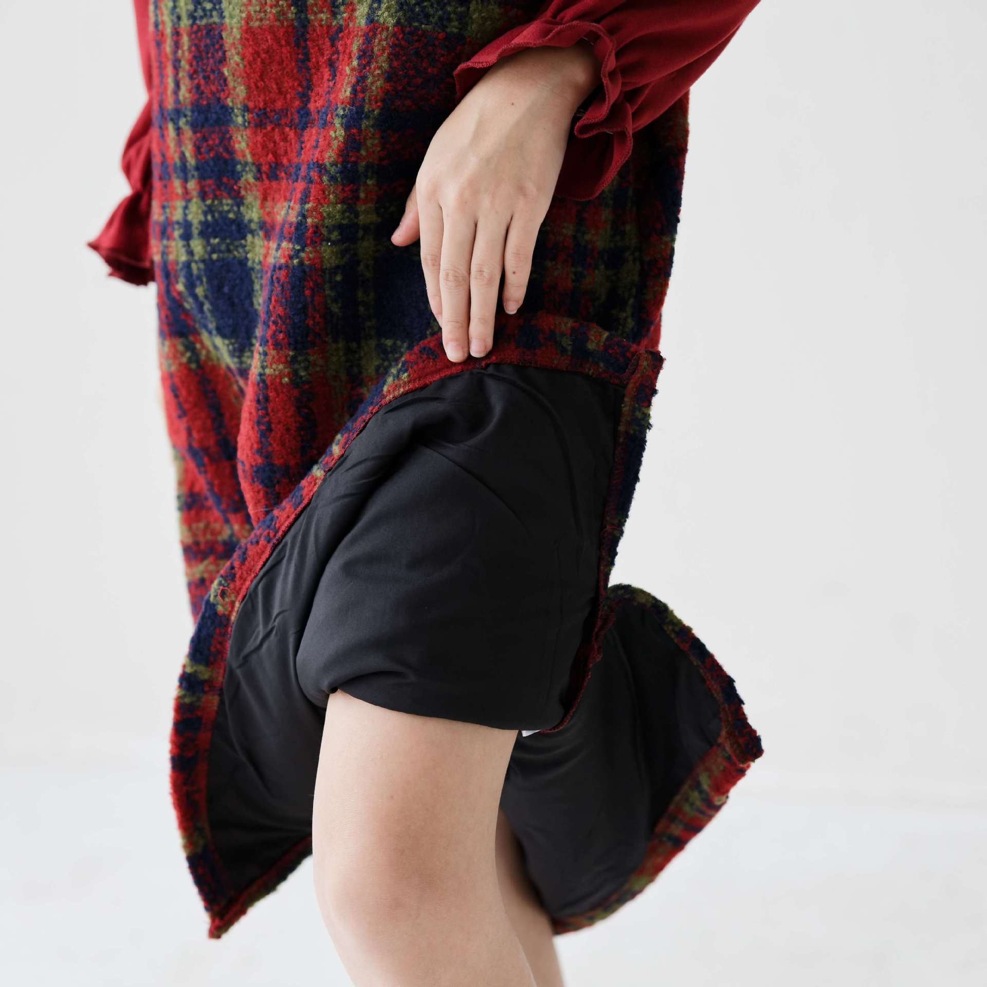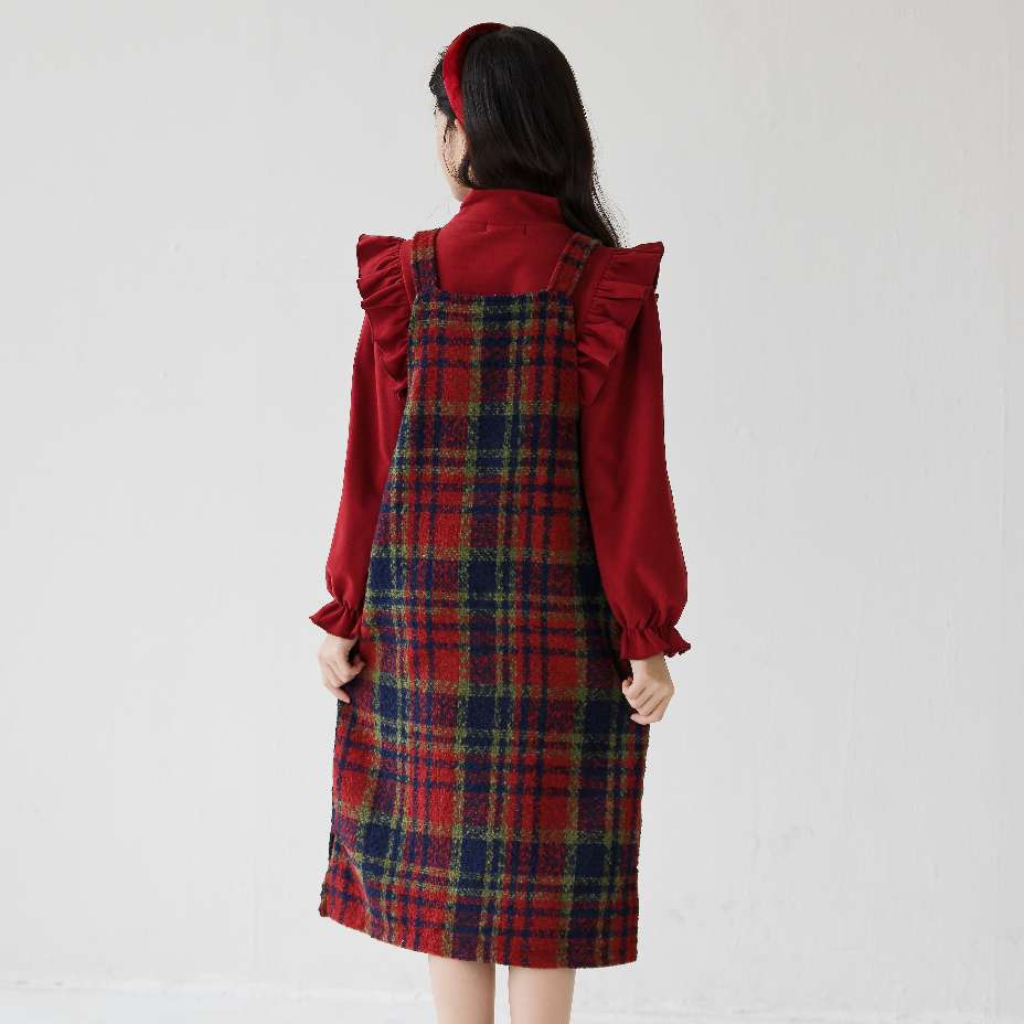 • 레드 바텀 셔츠 + 서스펜더 스커트