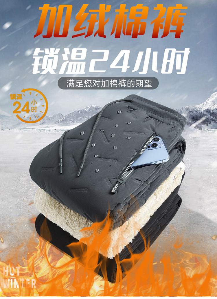 남성과 여성을위한 양고기 벨벳 코튼 팬츠 가을과 겨울 기모 패딩 된 캐주얼 바지 방풍 따뜻한 바지는 외국 무역에 머리카락을 착용합니다.스토어 가기