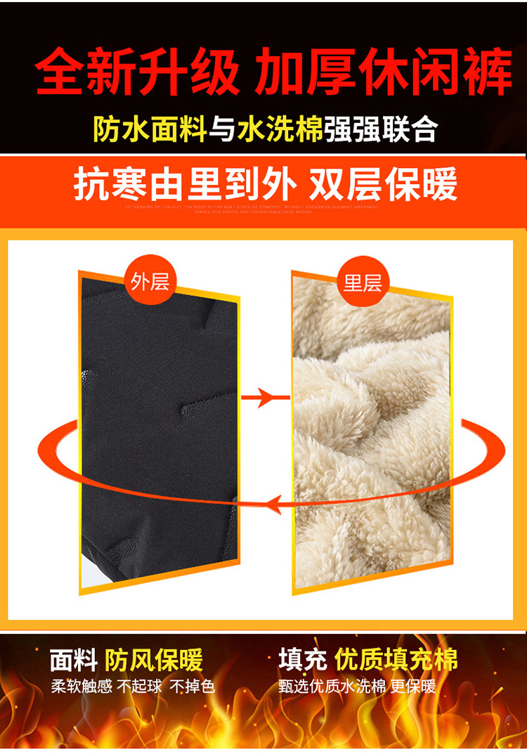 남성과 여성을위한 양고기 벨벳 코튼 팬츠 가을과 겨울 기모 패딩 된 캐주얼 바지 방풍 따뜻한 바지는 외국 무역에 머리카락을 착용합니다.