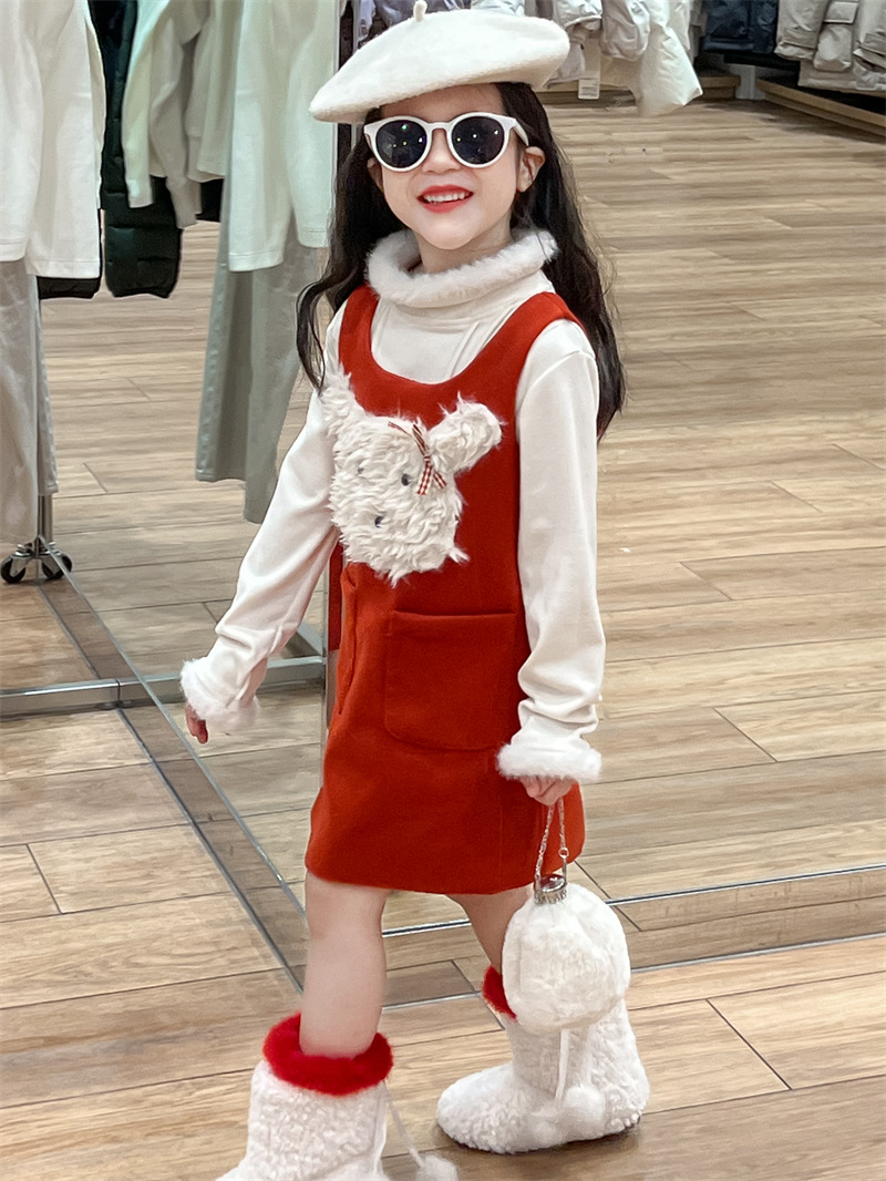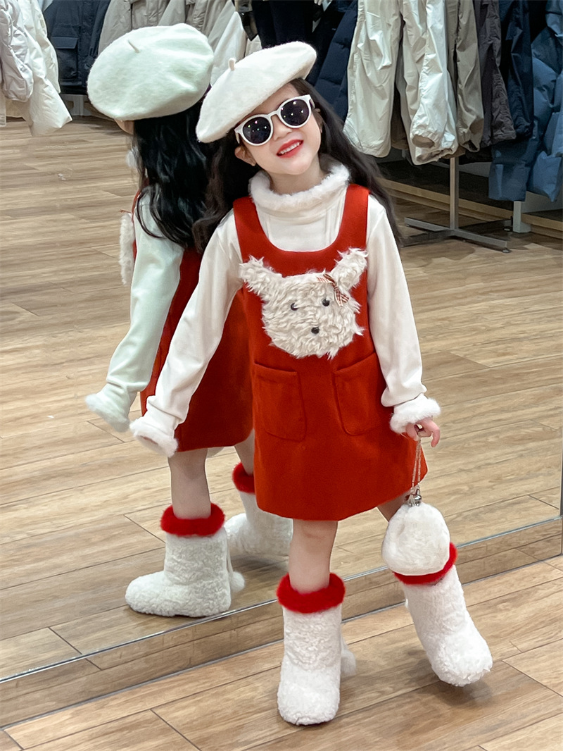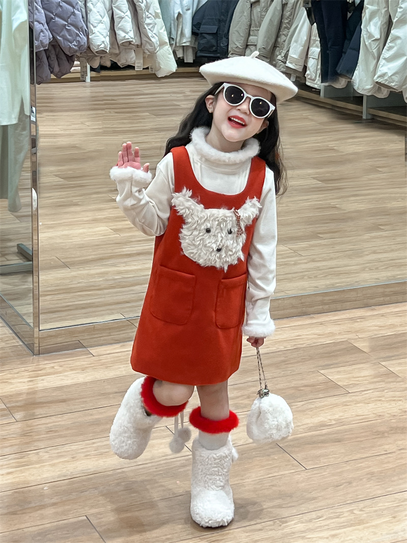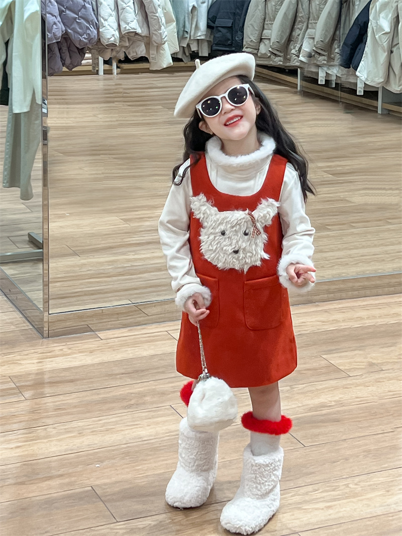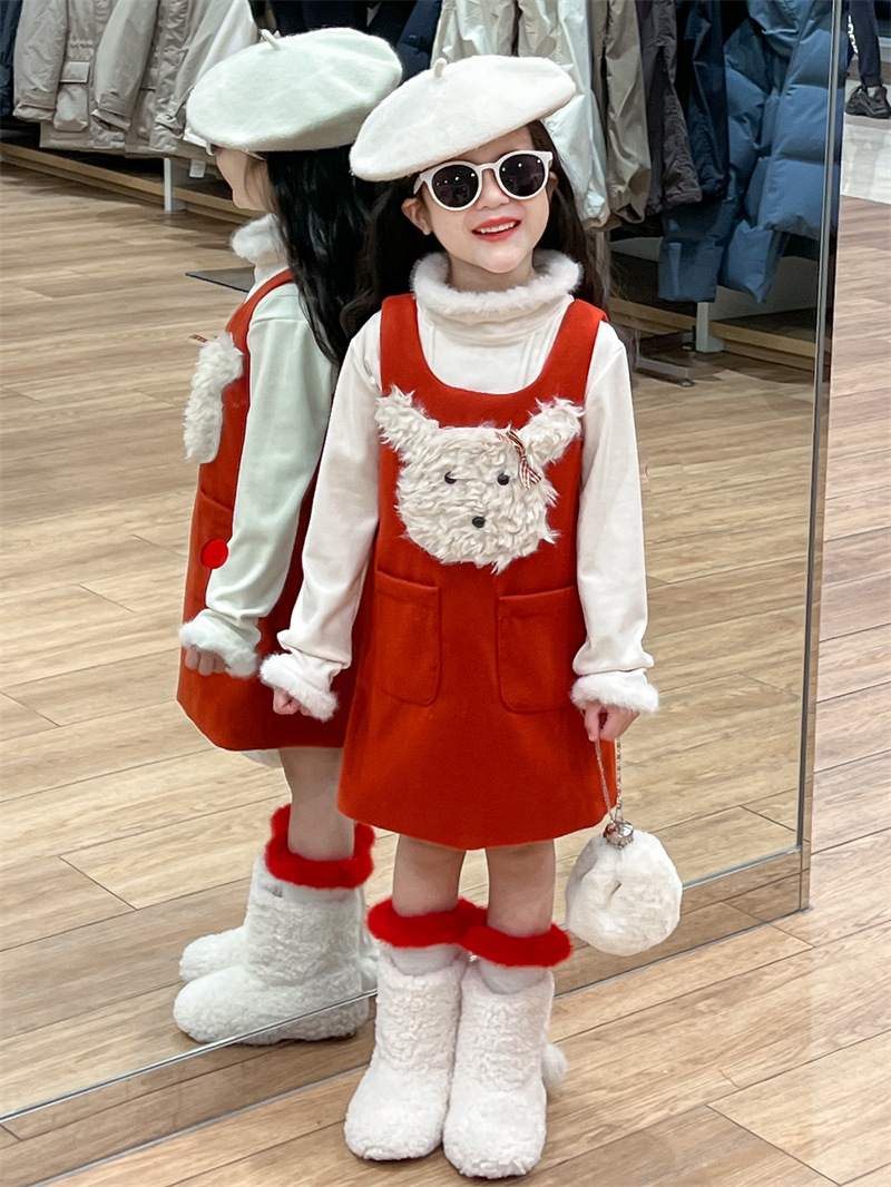 새해 원피스 ~ 소녀의 가을과 겨울 모피 엣지 백킹 셔츠 크리스마스 분위기 강아지 울 소재 조끼 스커트 투피스 스커트