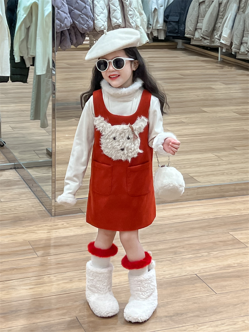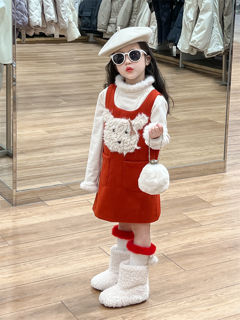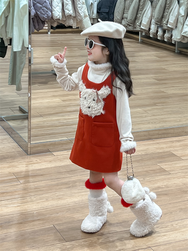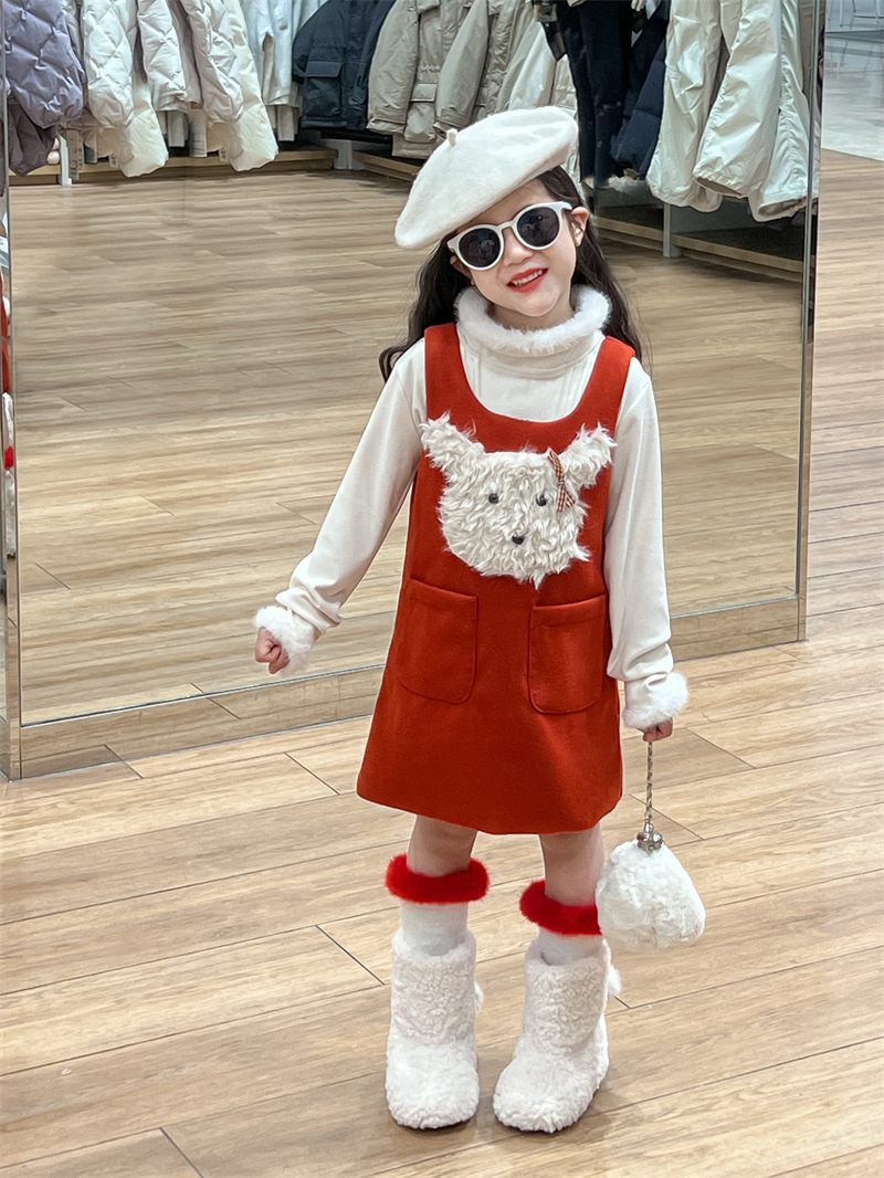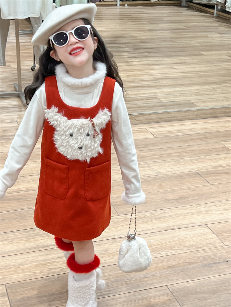 새해 원피스 ~ 소녀의 가을과 겨울 모피 엣지 백킹 셔츠 크리스마스 분위기 강아지 울 소재 조끼 스커트 투피스 스커트