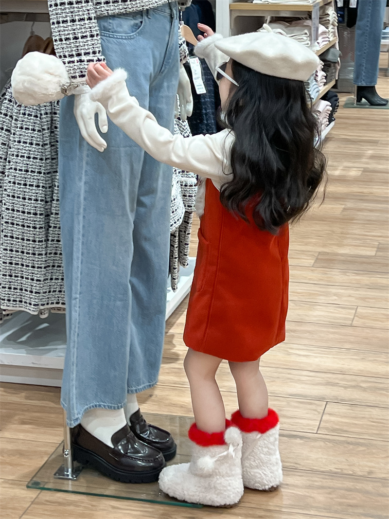 새해 원피스 ~ 소녀의 가을과 겨울 모피 엣지 백킹 셔츠 크리스마스 분위기 강아지 울 소재 조끼 스커트 투피스 스커트스토어 가기