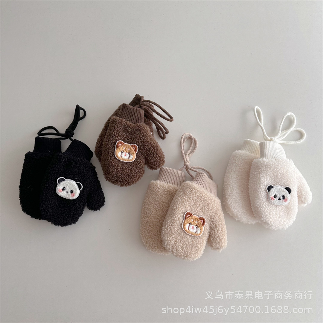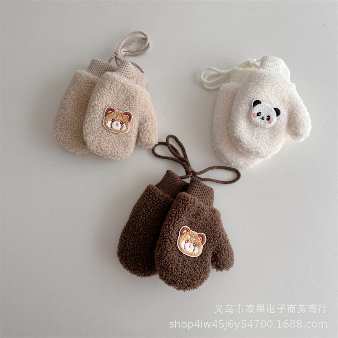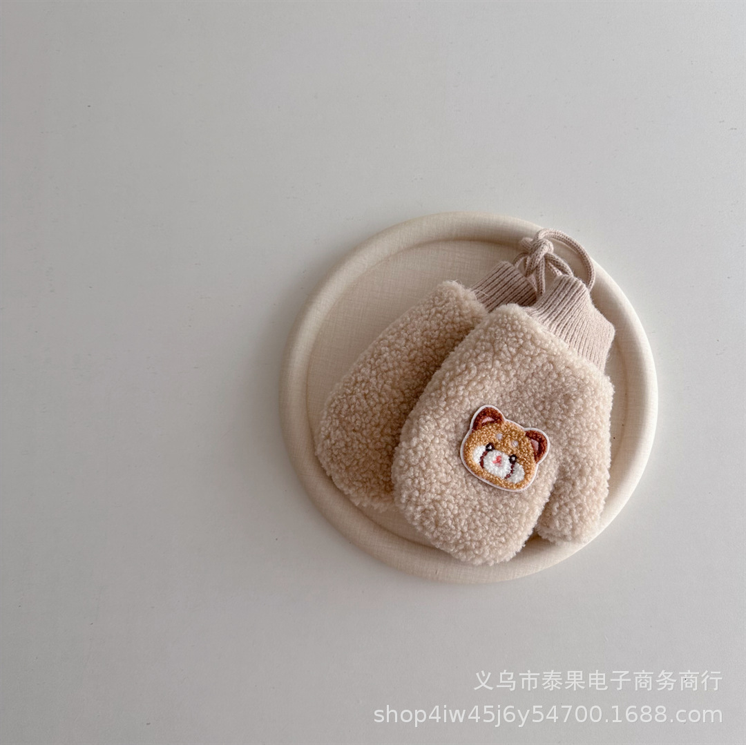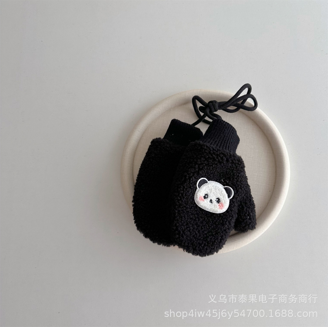 한국 어린이 만화 패딩 두꺼운 양고기 양털 발가락 한랭 가운 소년 소녀를위한 스타일리쉬 장갑
