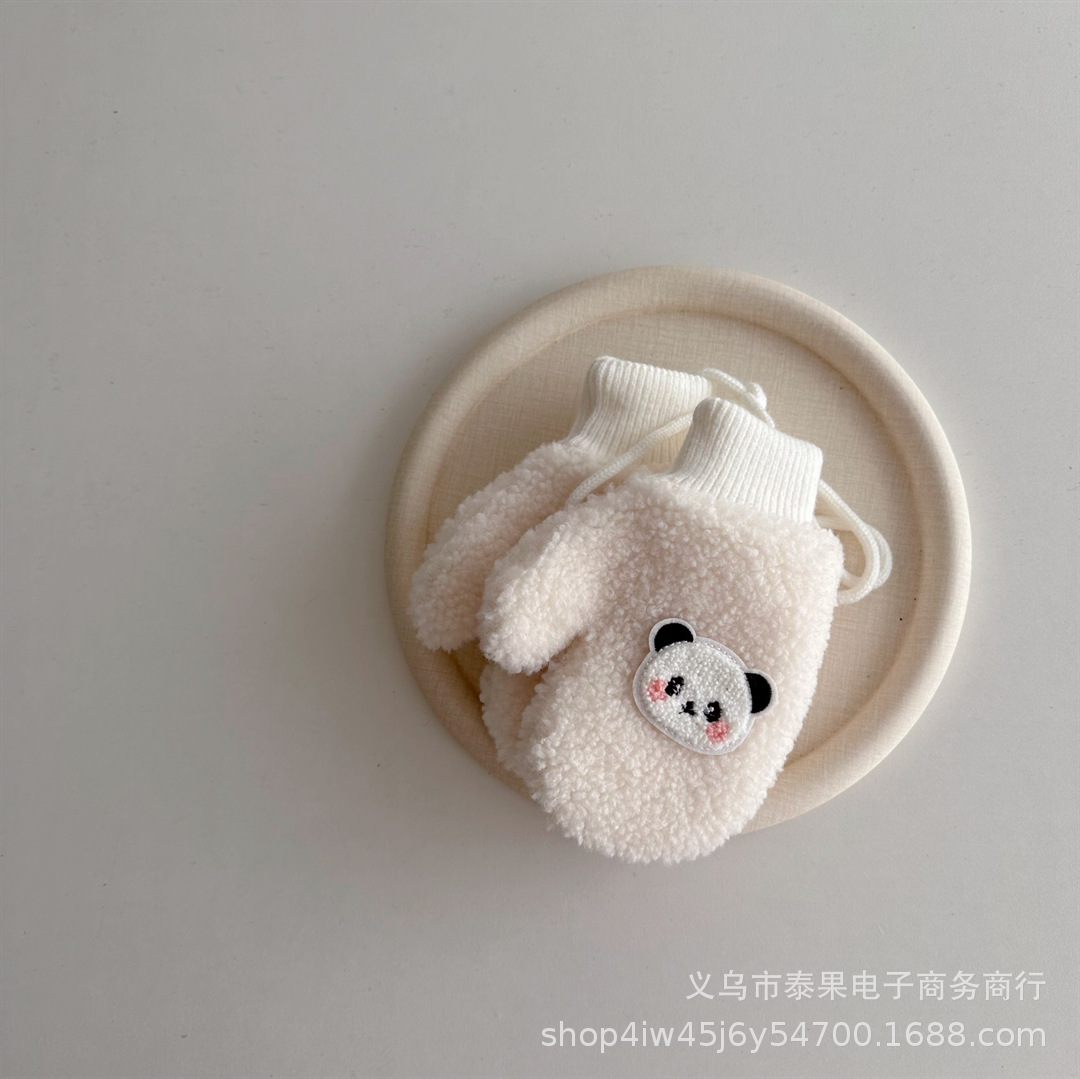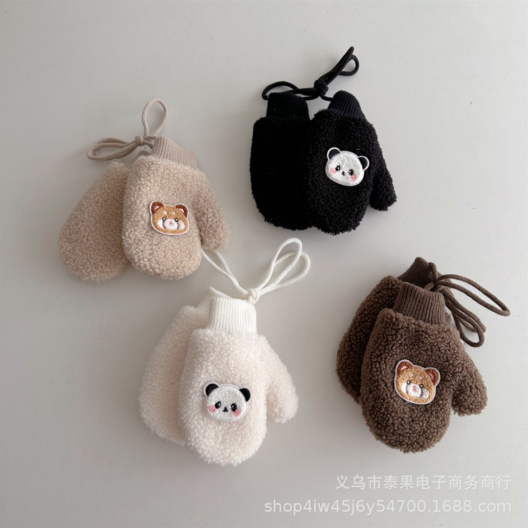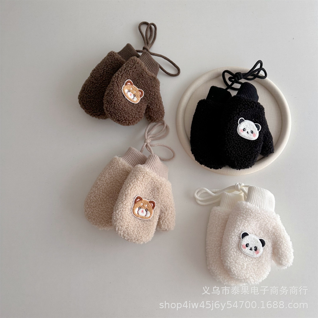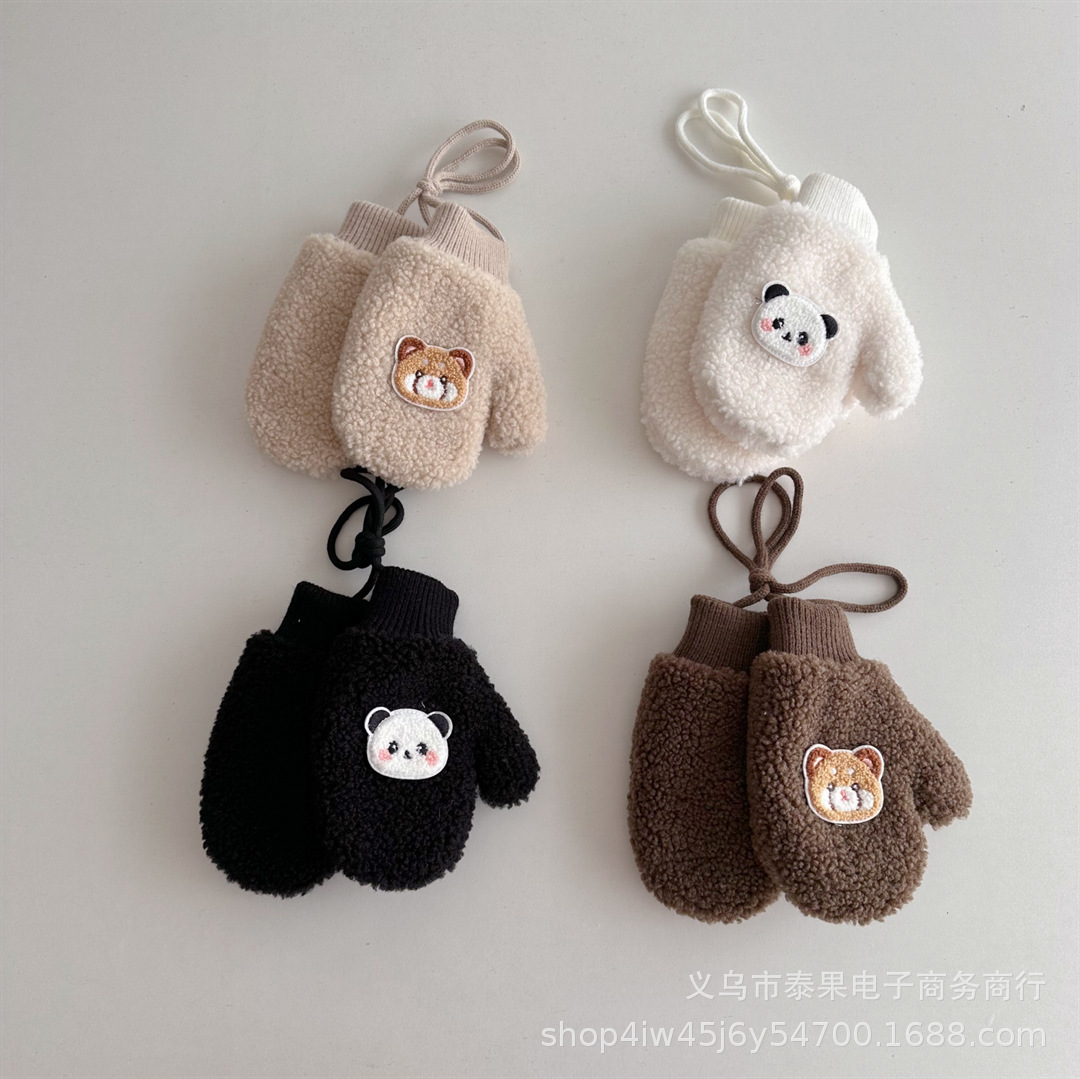 한국 어린이 만화 패딩 두꺼운 양고기 양털 발가락 한랭 가운 소년 소녀를위한 스타일리쉬 장갑