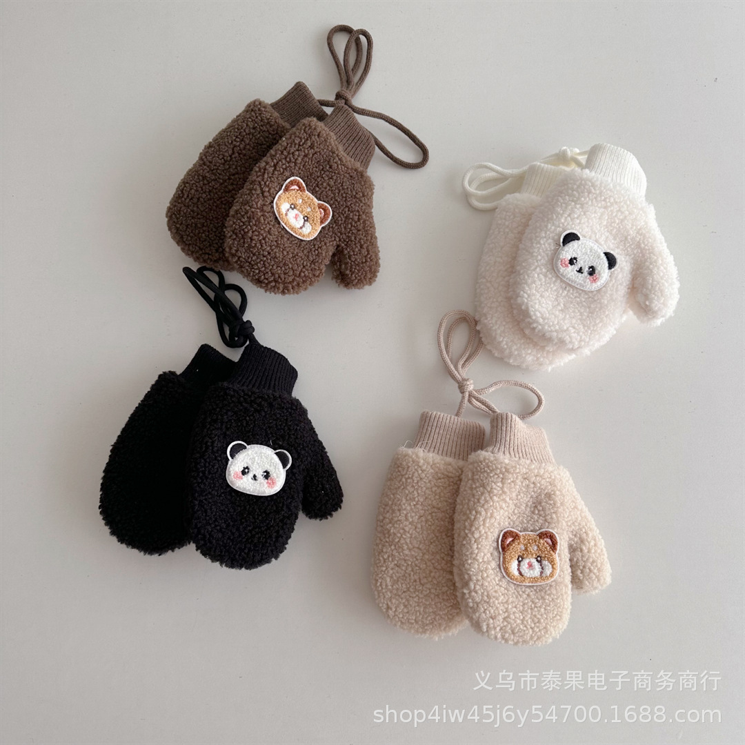 한국 어린이 만화 패딩 두꺼운 양고기 양털 발가락 한랭 가운 소년 소녀를위한 스타일리쉬 장갑스토어 가기