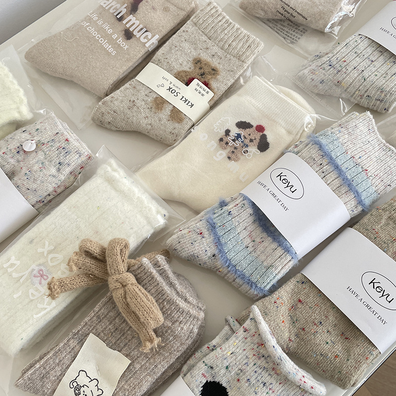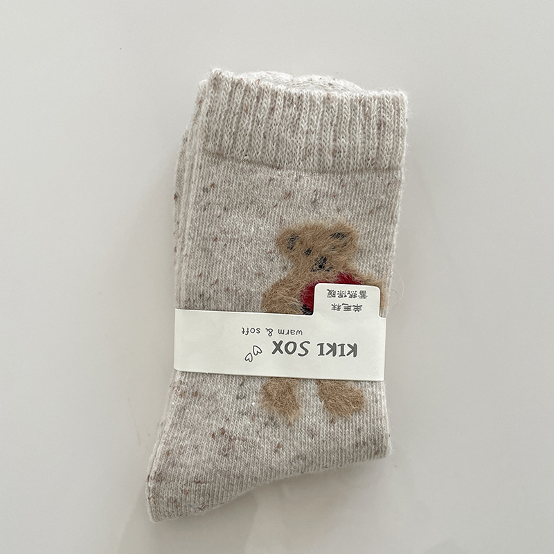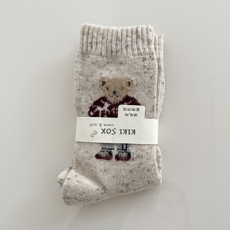 동대문 양모 양말 어린이 튜브 양말 베이지색 흰색 활 줄무늬 라이트 그레이 봉제 양말 가을 · 겨울