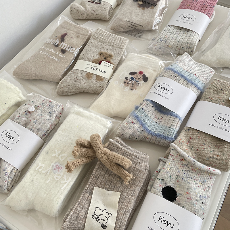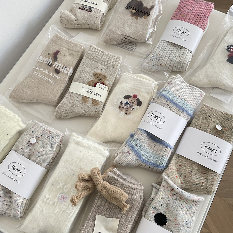 동대문 양모 양말 어린이 튜브 양말 베이지색 흰색 활 줄무늬 라이트 그레이 봉제 양말 가을 · 겨울스토어 가기