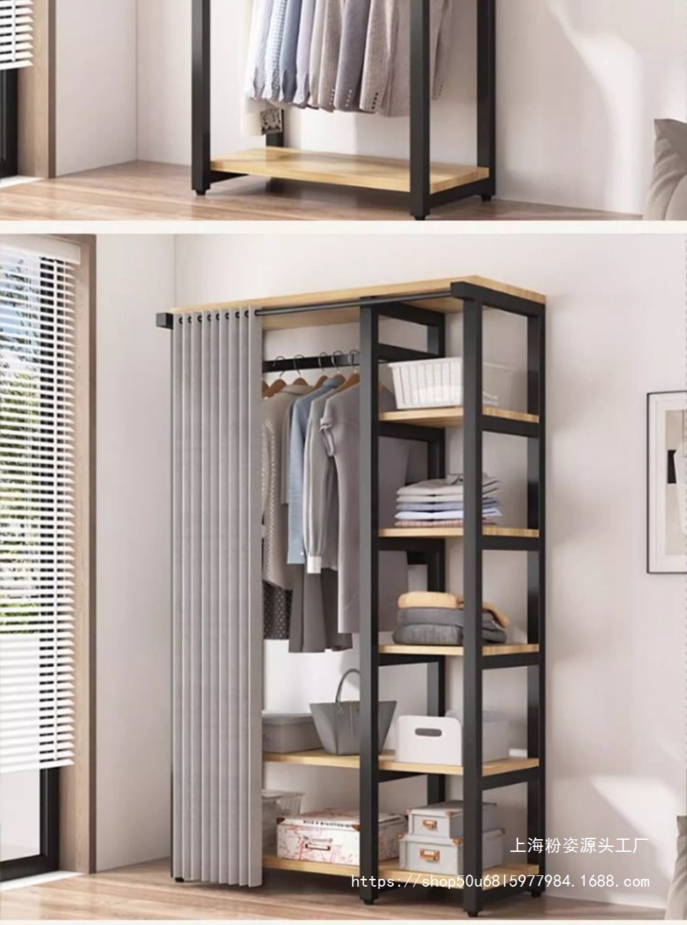 매달린 보관 옷장 오픈 옷장 커튼 보호소 침실 오픈 다층 간단한 코트 후드 렌탈 하우스 옷걸이