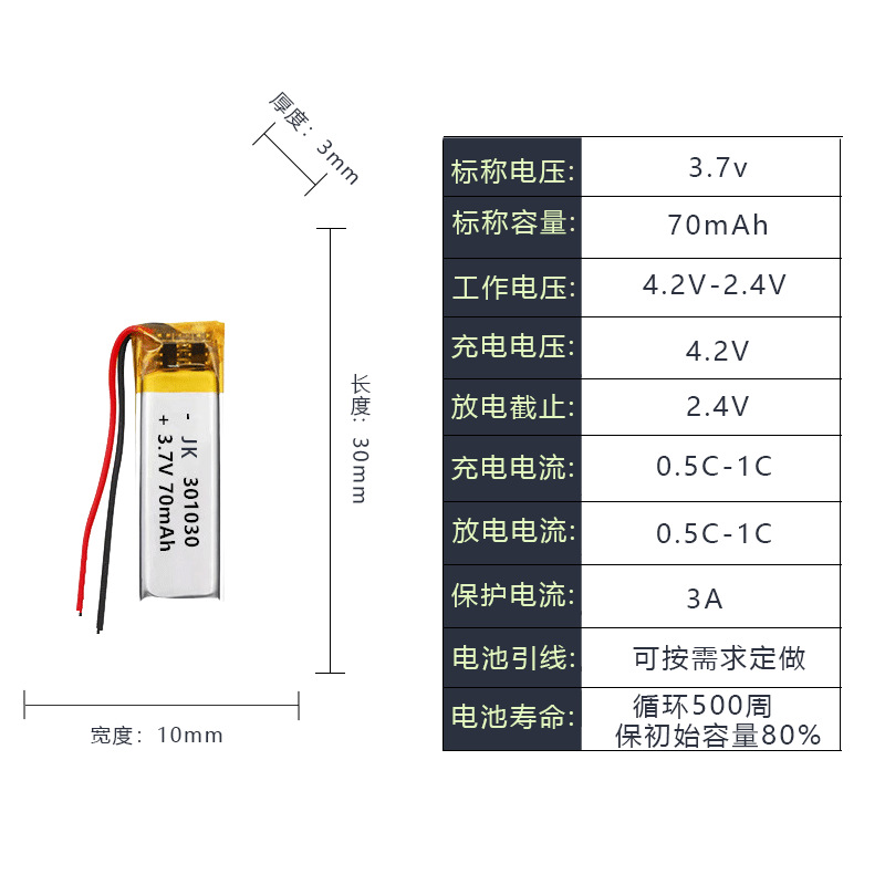301030 폴리머 리튬 배터리 70mAh 블루투스 넥 헤드셋 녹음 펜 LED 작은 책상 램프 3.7V스토어 가기