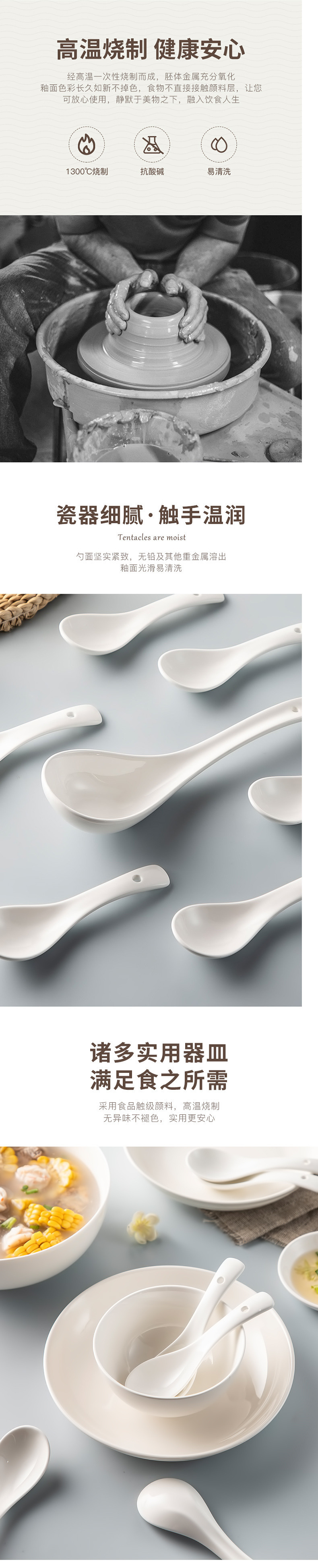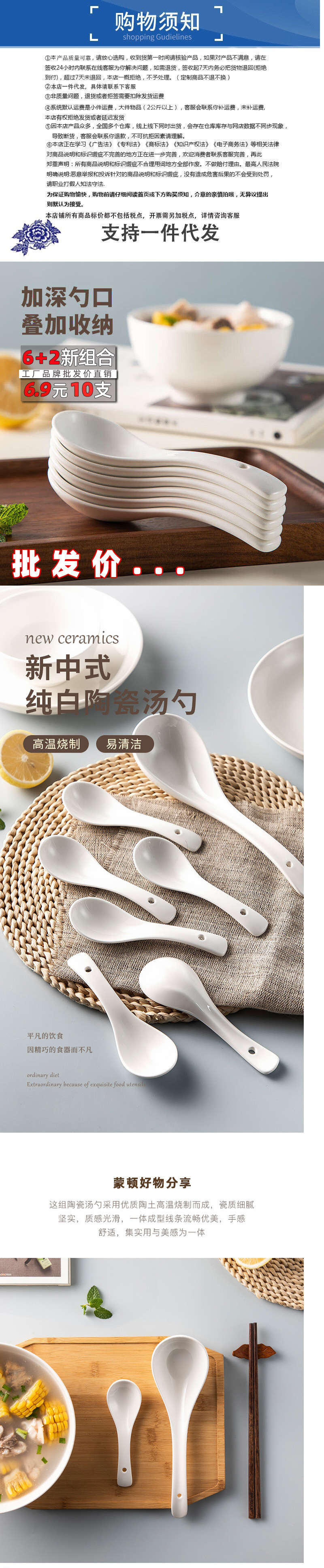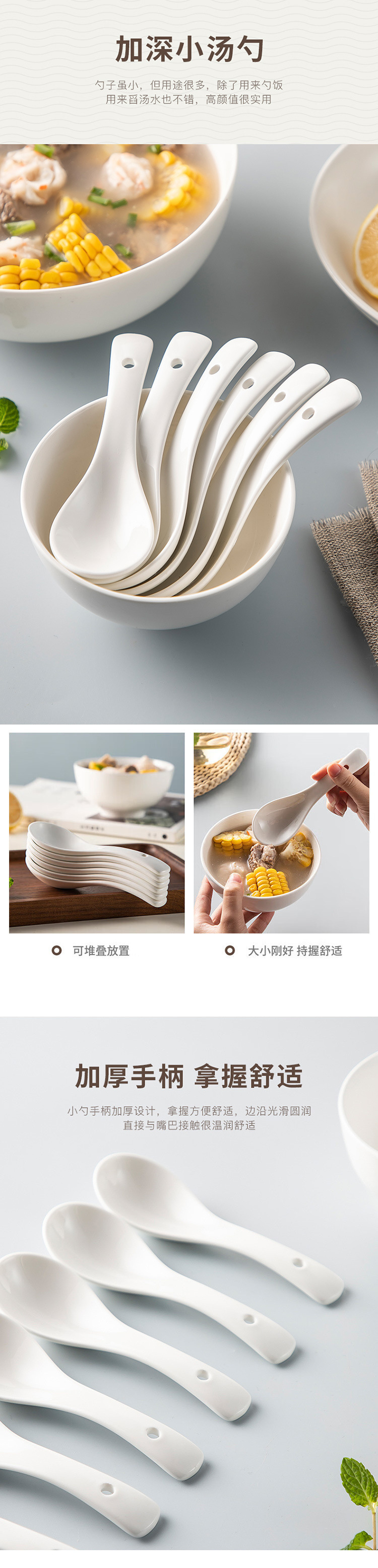 순수한 흰색 세라믹 스푼 상업용 유약 스푼 가정용 무연 음주 스푼 호텔 간단한 비 뼈 중국 작은 쌀 스푼스토어 가기