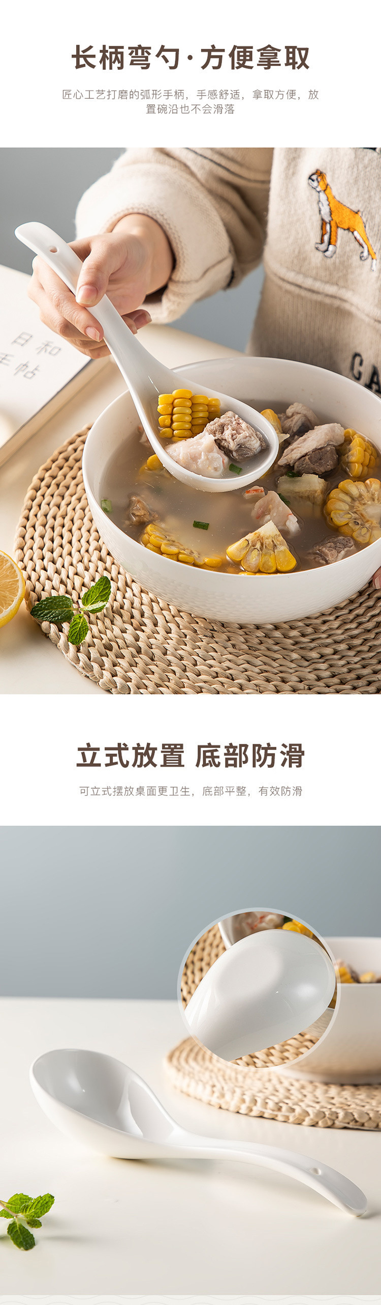 순수한 흰색 세라믹 스푼 상업용 유약 스푼 가정용 무연 음주 스푼 호텔 간단한 비 뼈 중국 작은 쌀 스푼