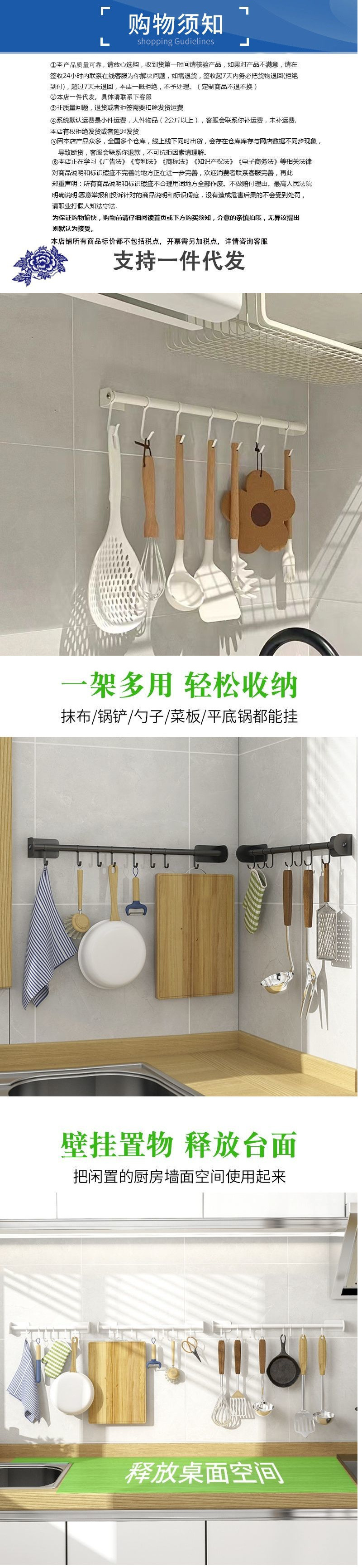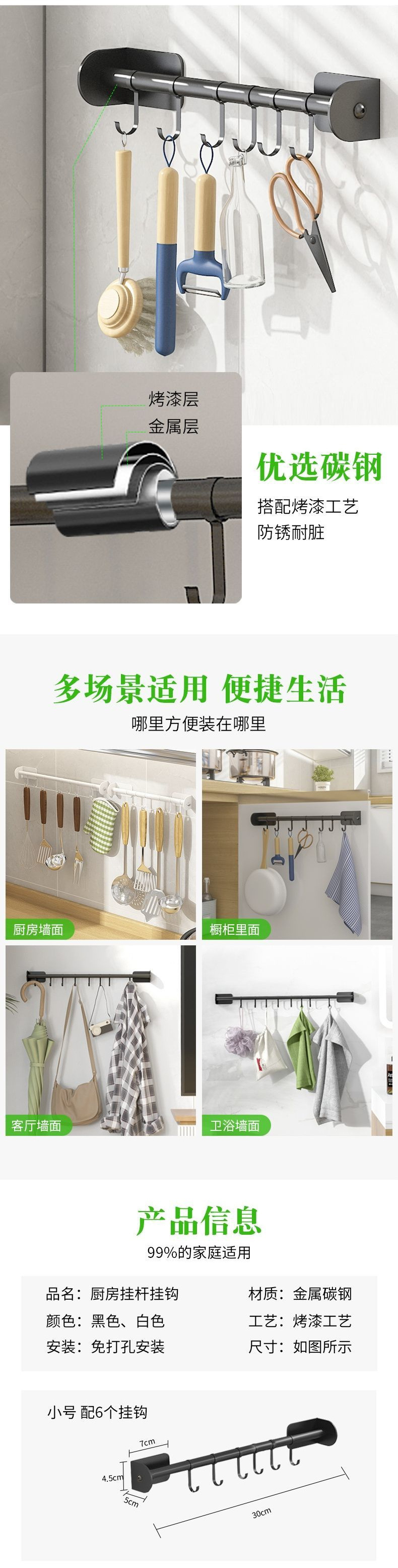 주방 벽 교수형 랙 팟 후크 비 펀치 벽 보관 도마 스푼 삽 랙스토어 가기