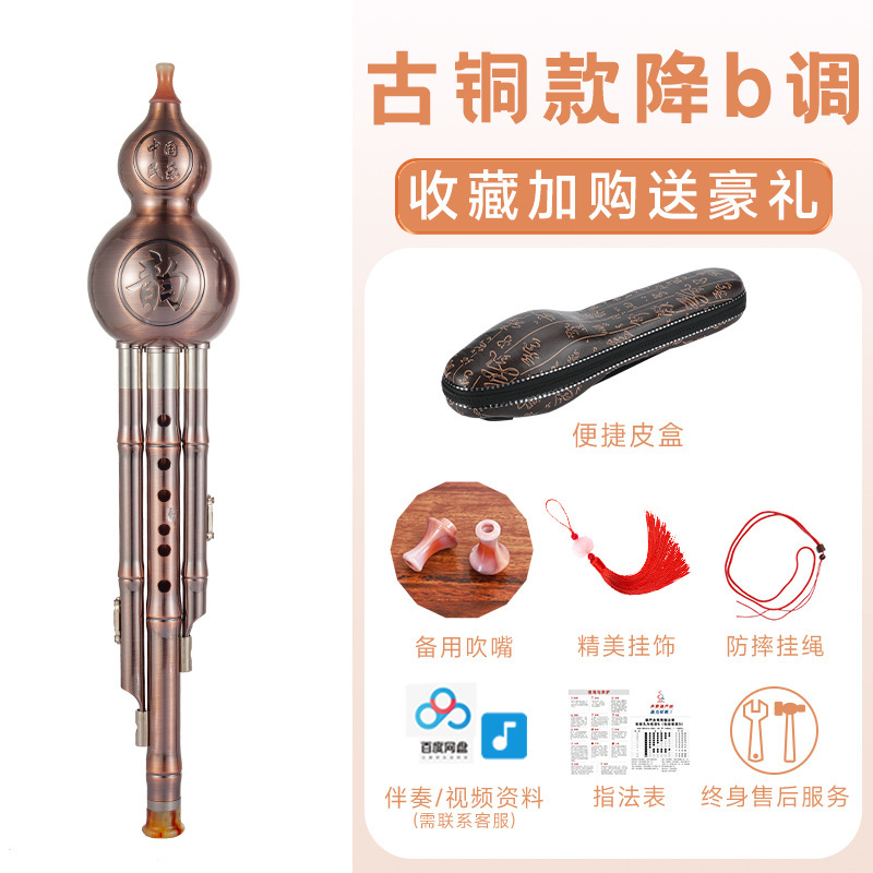 • 브론즈 스타일 B 플랫 조롱박 + 가죽 상자 + 교과서 + 펜던트