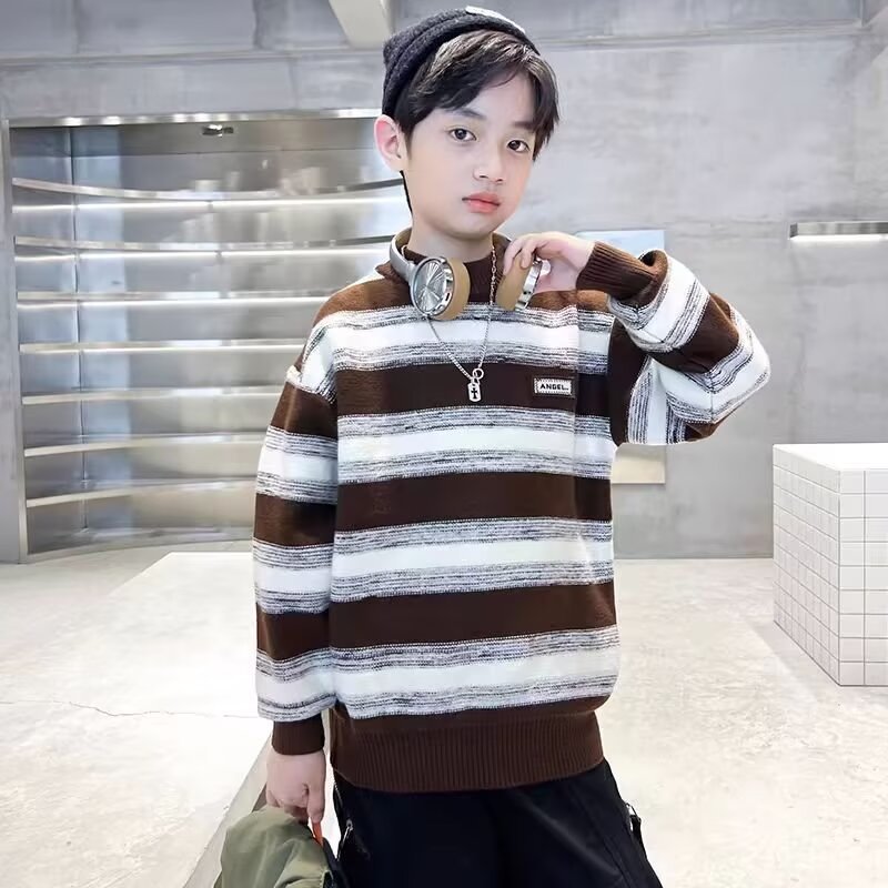 소년 스웨터 가을과 겨울 2024 새로운 큰 어린이 소년 겨울 바지 셔츠 겨울 기모 두꺼운 조수스토어 가기