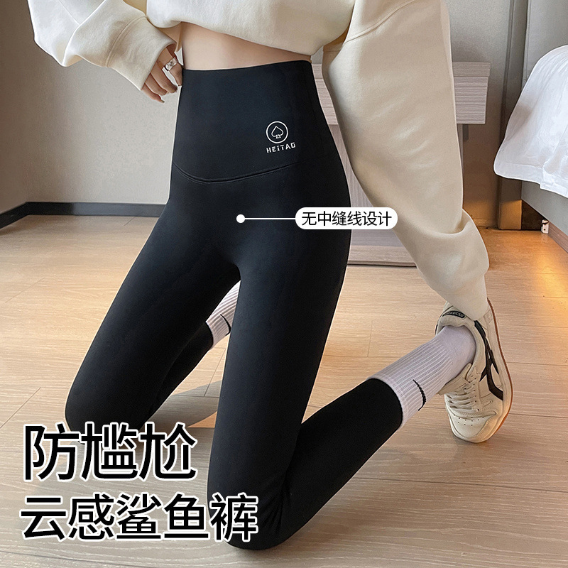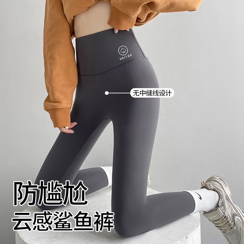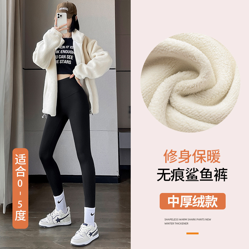 상어 바지 기모 여성의 가을과 겨울 2024 새로운 높은 허리 레깅스 따뜻한 외부 착용 회색 요가 바비 바지스토어 가기