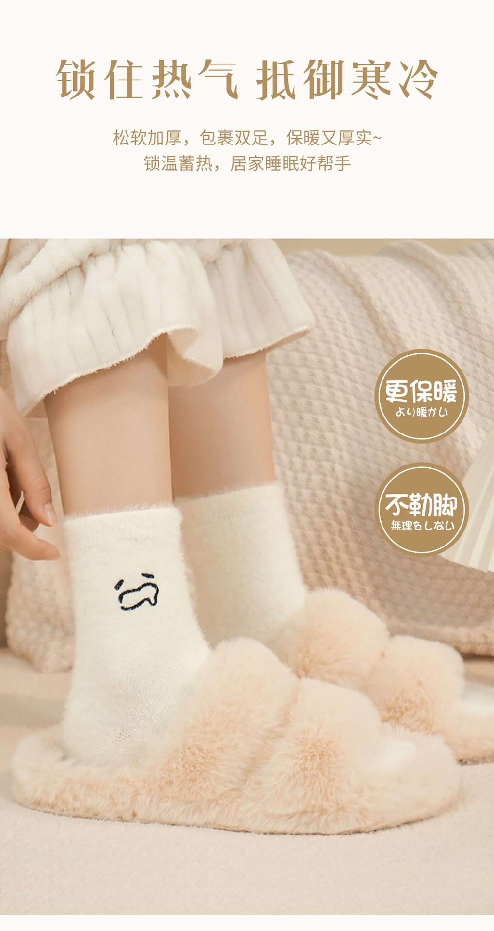 흰색 양말 여성의 가을과 겨울 따뜻한 밍크 벨벳 수면 홈 양말 자수 재미있는 표현 겨울 숙녀 튜브스토어 가기