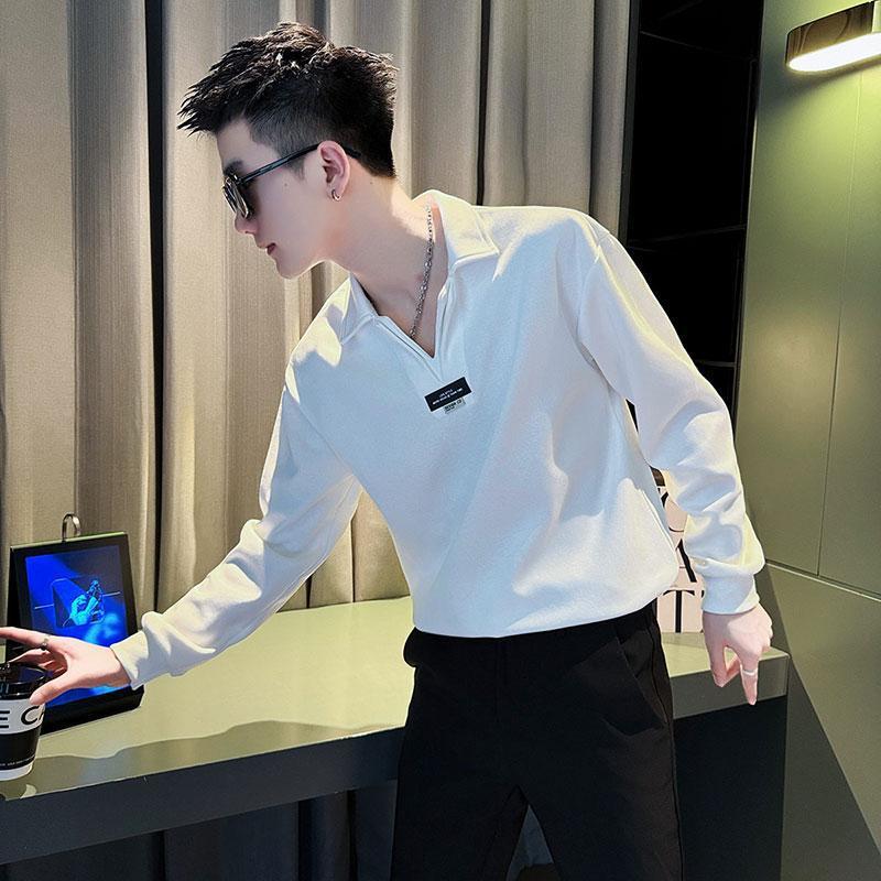 화이트 스웨터 남성 패션 브랜드 V 넥 긴팔 티셔츠 2024 새로운 남성 내베이스 셔츠 봄과 가을 재킷 잘 생긴스토어 가기