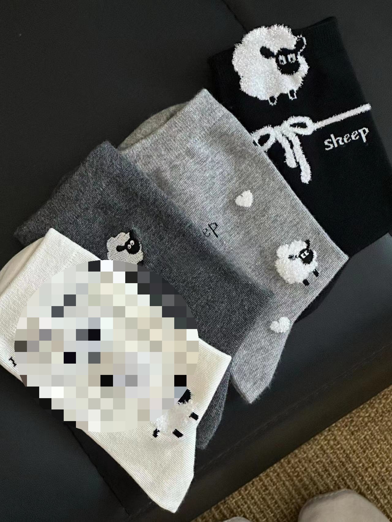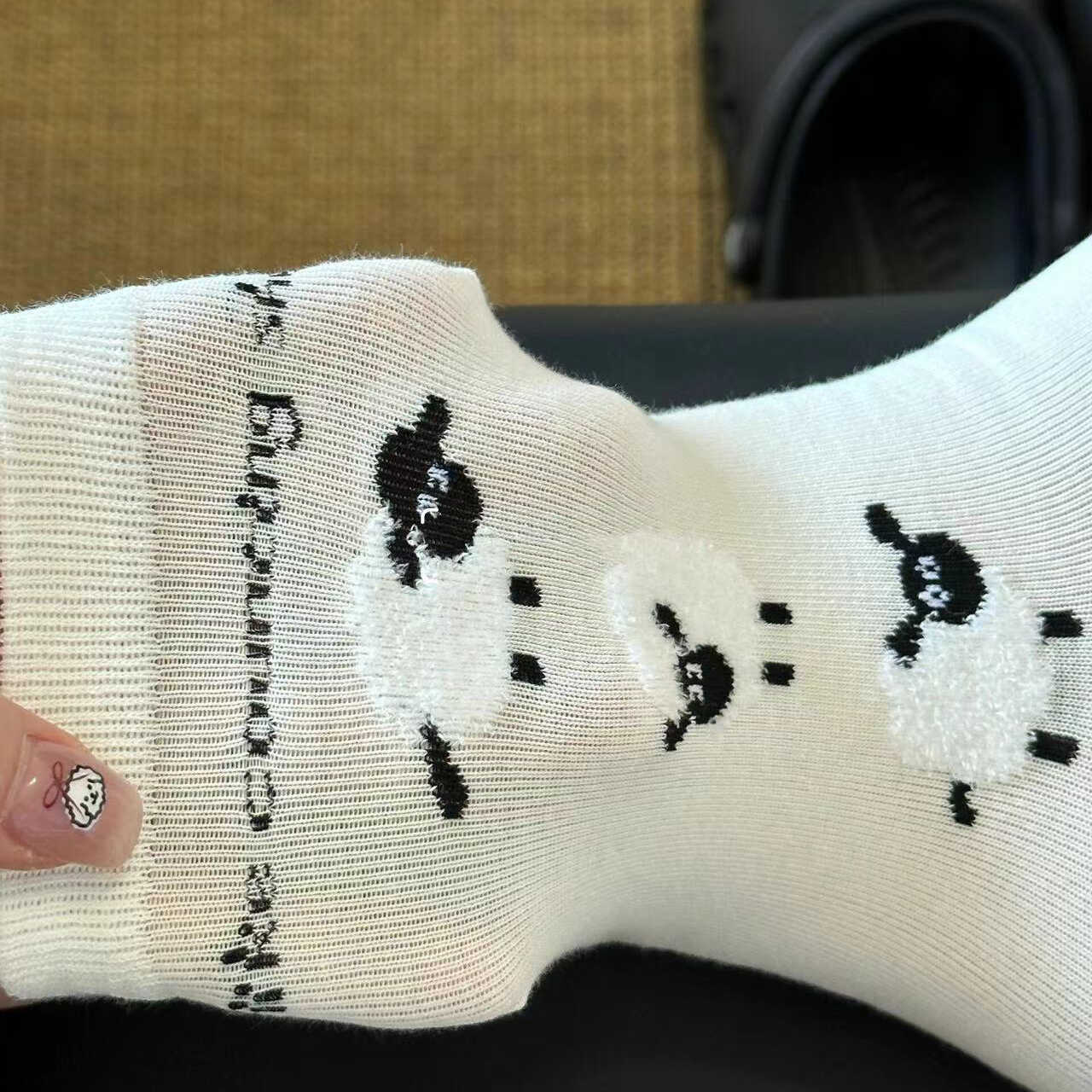 일본 스타일 귀여운 양고기 양말 여성 중간 길이 양말 Instagram 스타일 유행 순수 코튼 여름 얇은 만화 편지 봄과 가을 스타킹