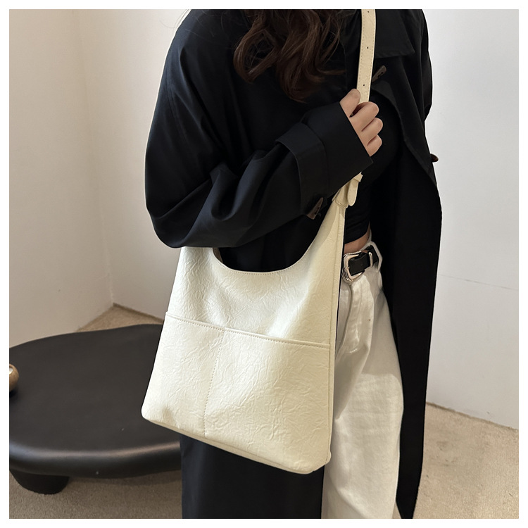 크로스 바디 백 레트로 솔리드 컬러 섬유 PU 통근 레저 숄더 백 간단한 올 매치 대용량 가방 여성 국경