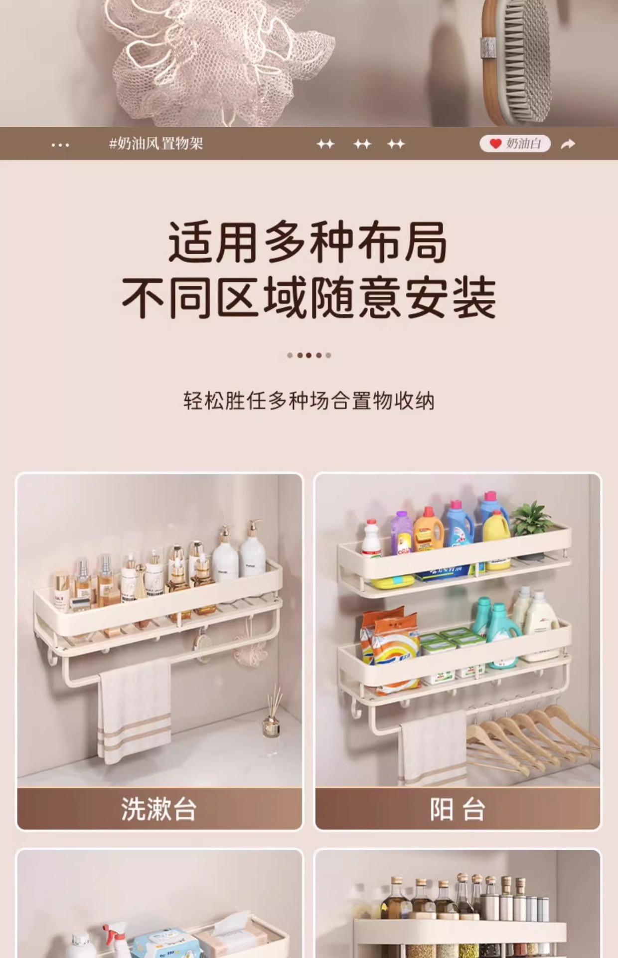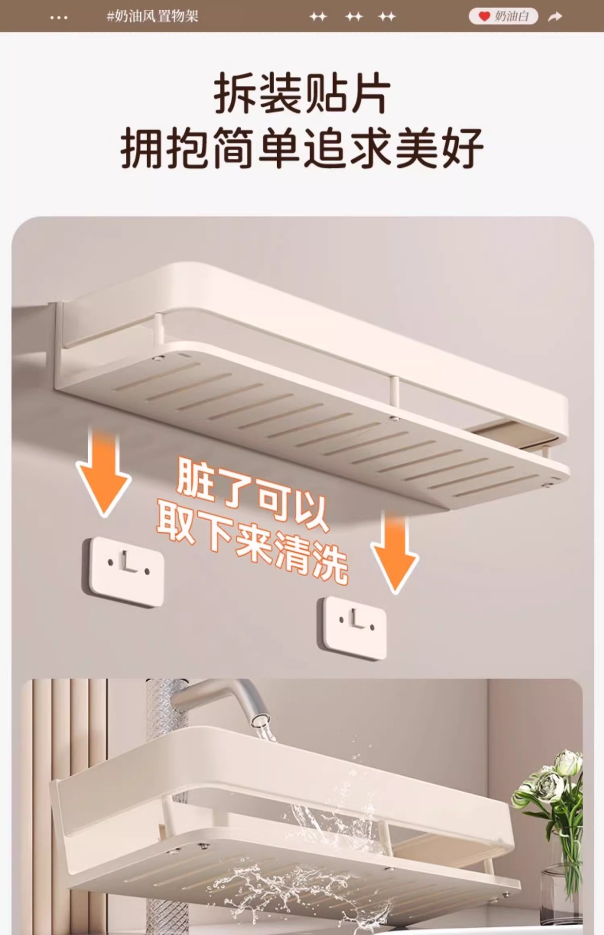 크림 스타일 화장실 저장 선반 세척 테이블 펀치없는 벽 교수형 욕실 발코니 벽 화장실 보관 선반