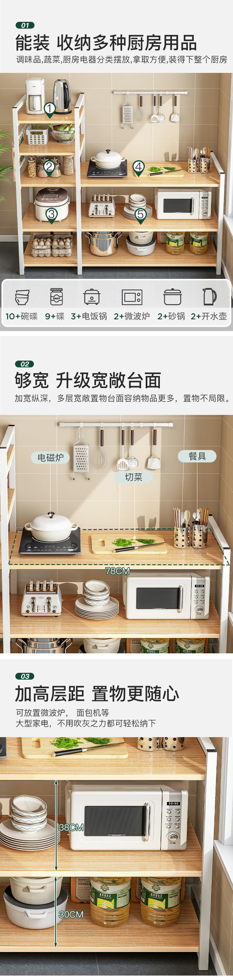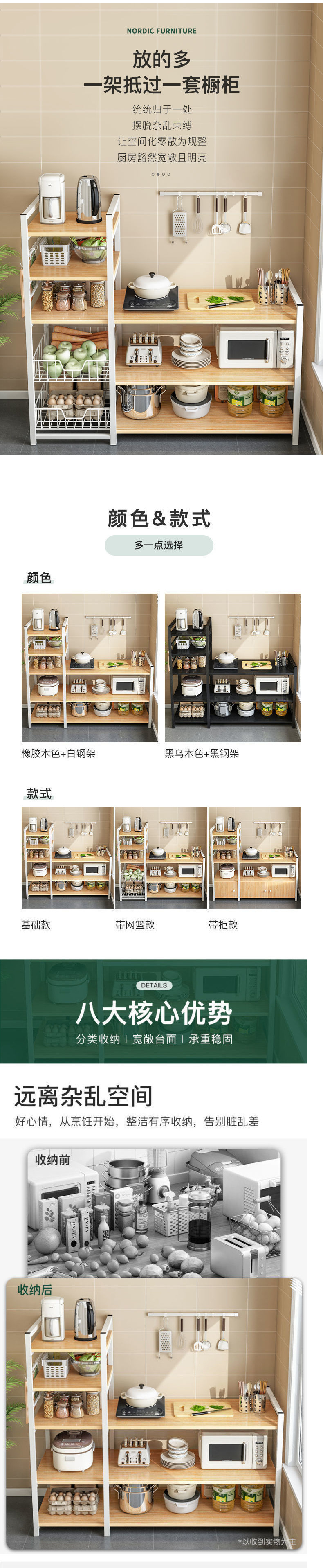 주방 보관 랙 다층 저장 랙 전자 레인지 멀티 기능 계층화 된 야채 랙 바닥 캐비닛 보관 캐비닛