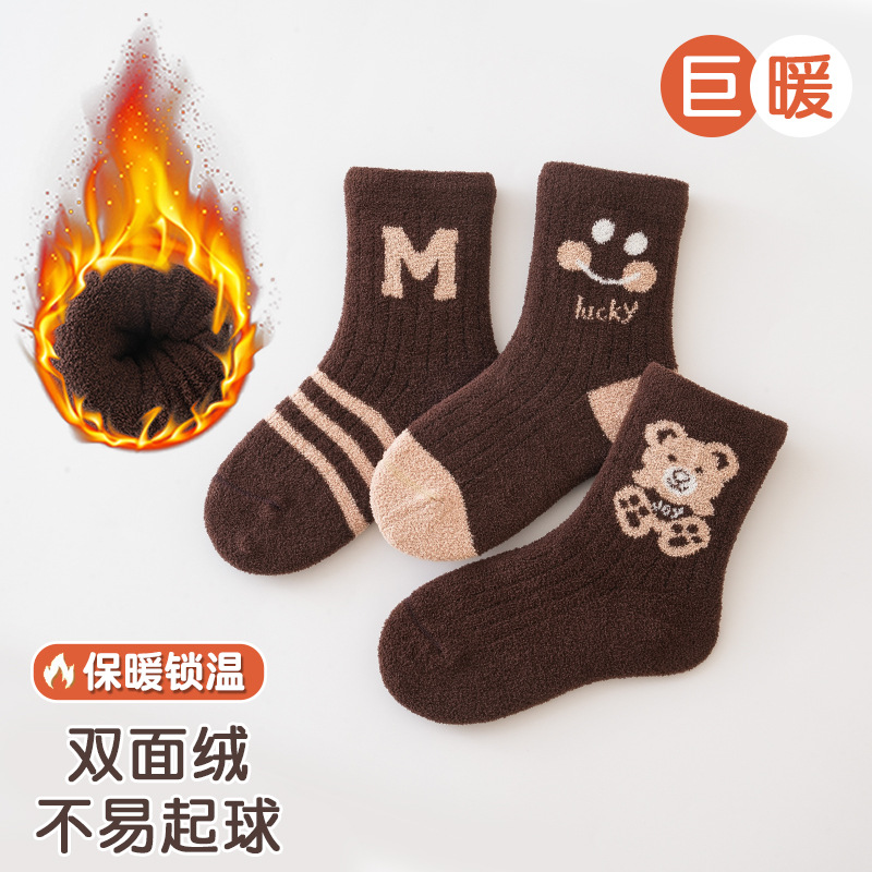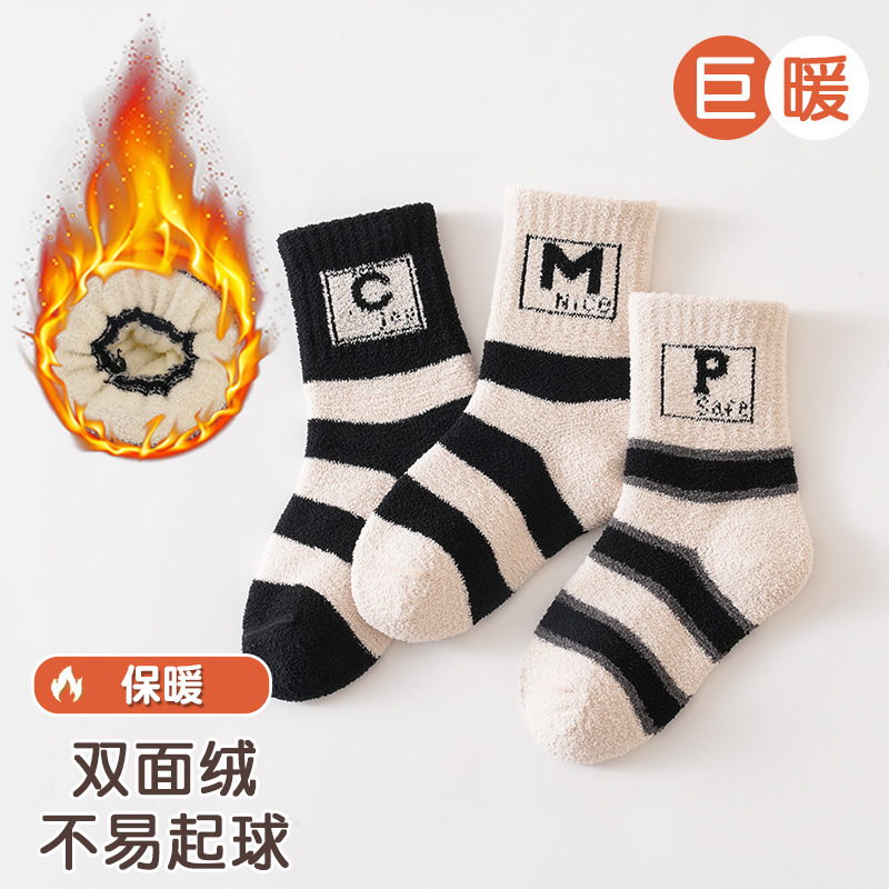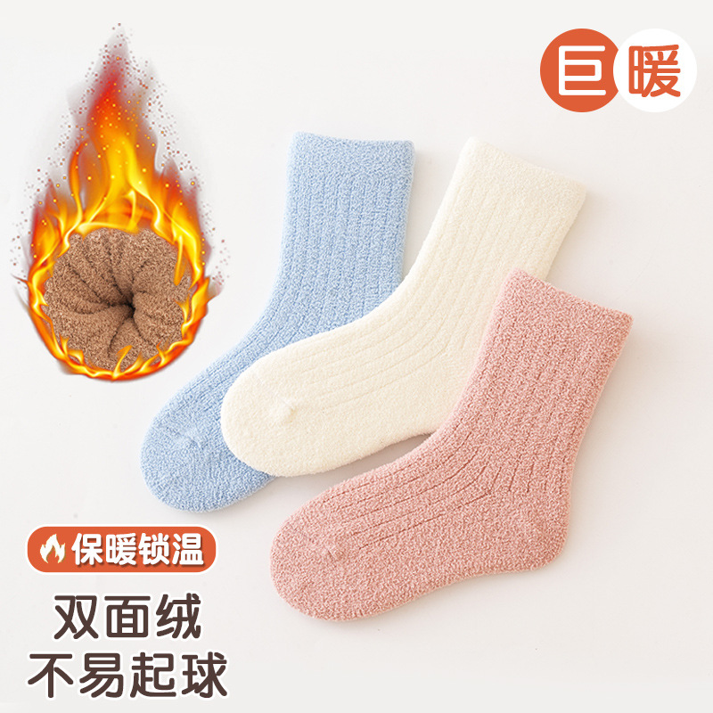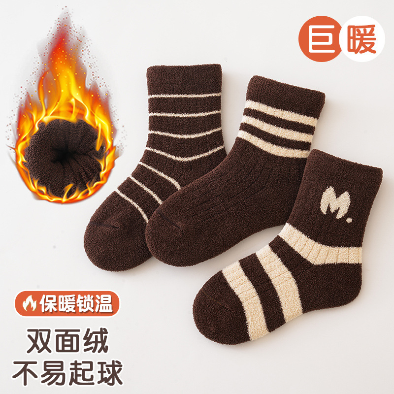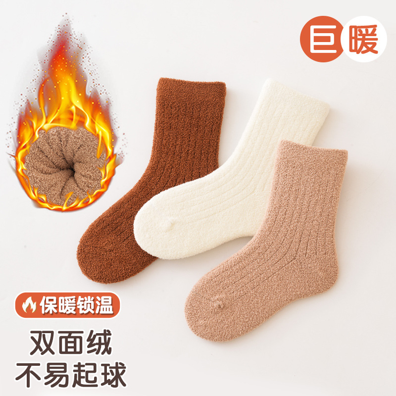 3 쌍-어린이 양말 가을과 겨울 두꺼운 안티 필링 겨울 따뜻한 산호 양털 튜브 소년과 소녀 가을 아기 양말