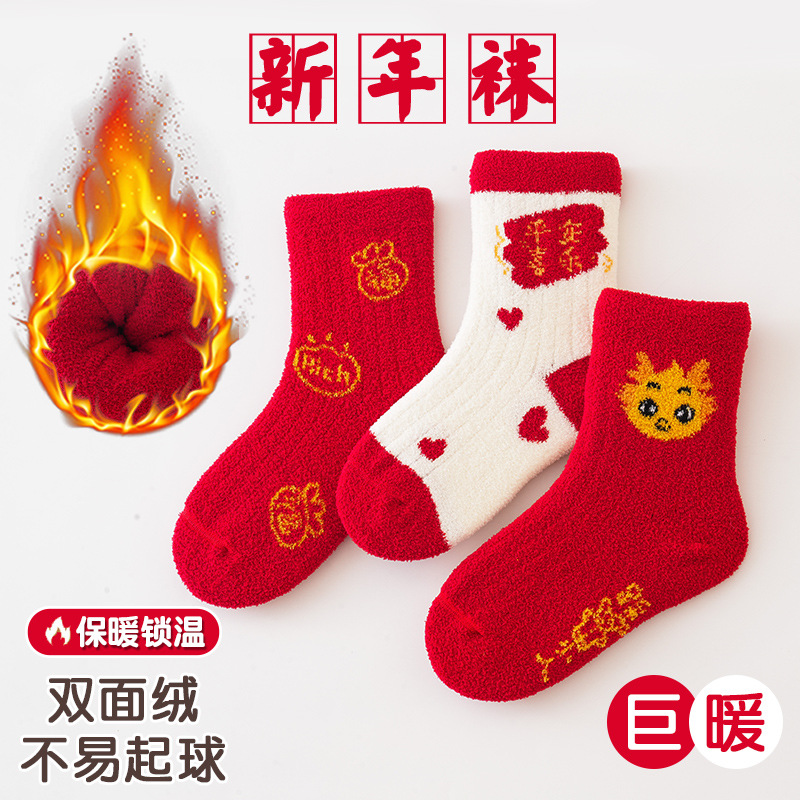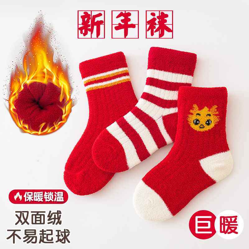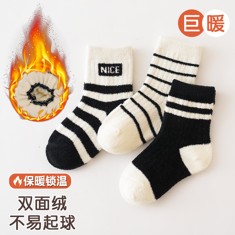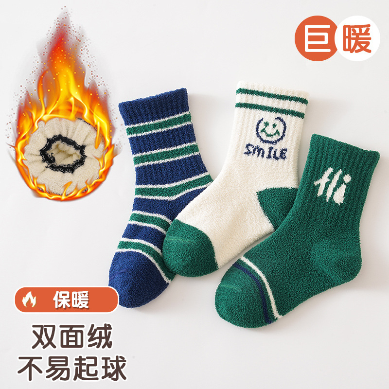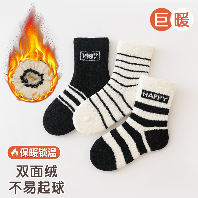 3 쌍-어린이 양말 가을과 겨울 두꺼운 안티 필링 겨울 따뜻한 산호 양털 튜브 소년과 소녀 가을 아기 양말