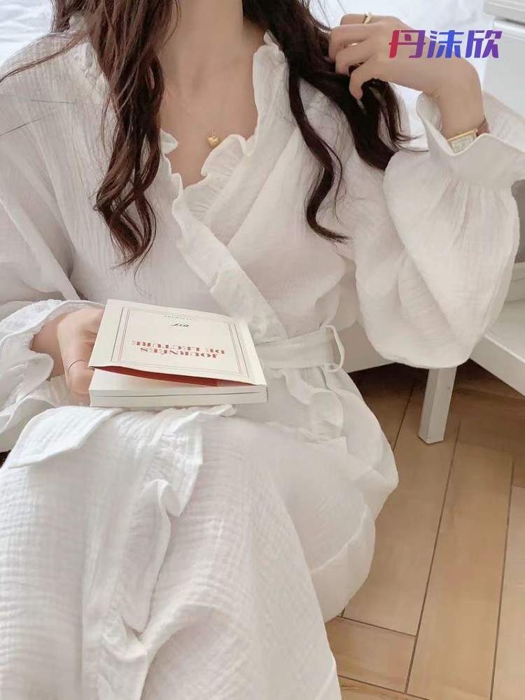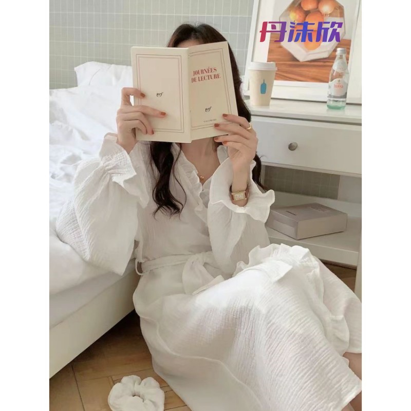 목욕 가운 잠옷 홈 의류 한국 스타일 간단한 달콤한 주름 중간 길이의 잠옷 2023 봄/가을 겨울 새로운