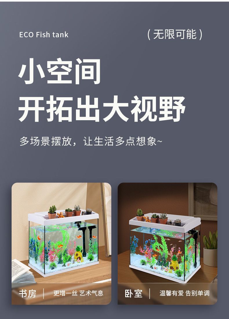 물고기 탱크 수족관 거실 작은 자기 순환 가구 게으른 물 무료 생태 데스크탑 유리 금붕어 탱크 정리스토어 가기