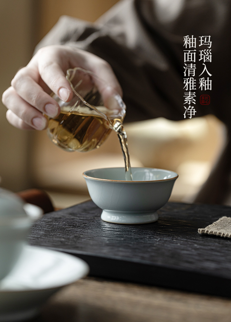Hao Lan 세라믹 스카이 블루 Ru Kiln 오프닝 필름은 마스터 티 컵 쿵푸 티 세트 하이 엔드 개인 스페셜 컵을 올릴 수 있습니다스토어 가기