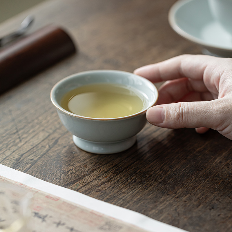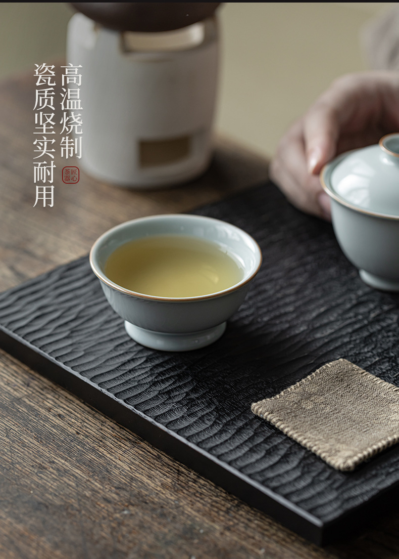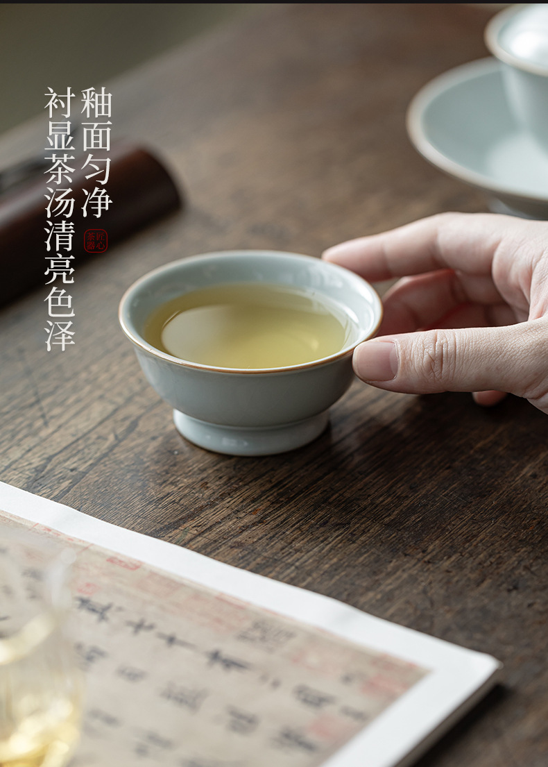 Hao Lan 세라믹 스카이 블루 Ru Kiln 오프닝 필름은 마스터 티 컵 쿵푸 티 세트 하이 엔드 개인 스페셜 컵을 올릴 수 있습니다