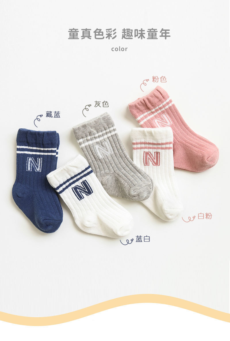 어린이 양말 봄 가을 귀여운 루즈핏 아기 양말 스포츠 단색 남녀공용 레터링 중목 양말 도매