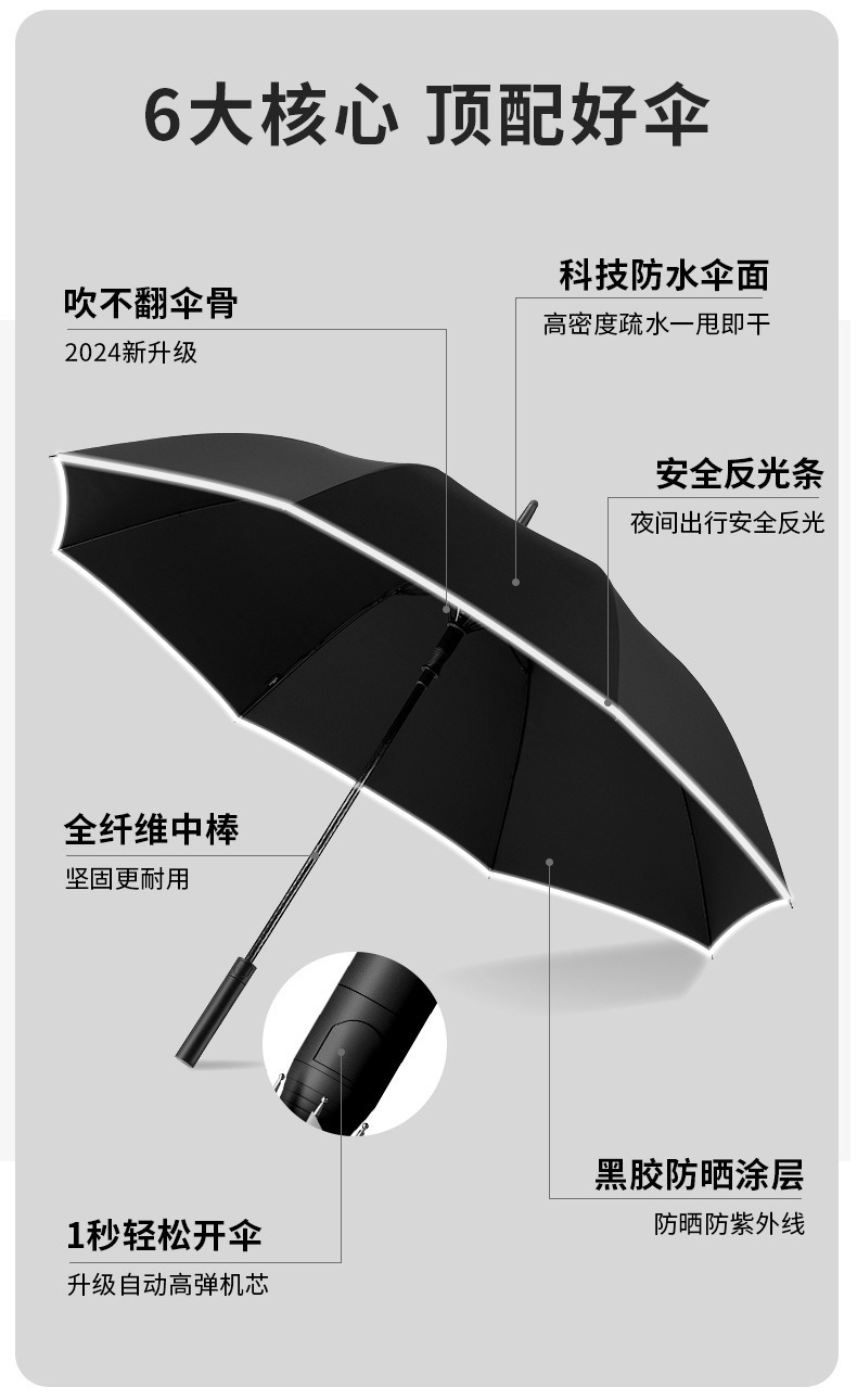 • [130cm 특대형 우산커버] 비즈니스 블랙☔️섬유 방풍 우산 꽂이⭐야간 반사 스트립