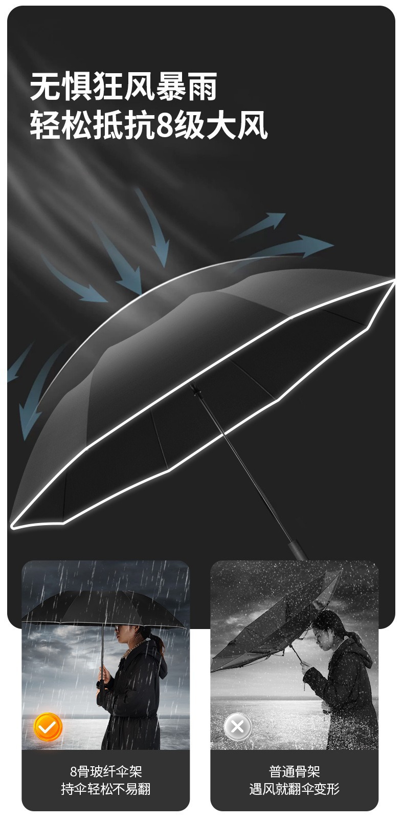 • [업그레이드된 나무 손잡이] 비즈니스 블랙☔️강화된 방풍 우산 꽂이⭐자외선 차단