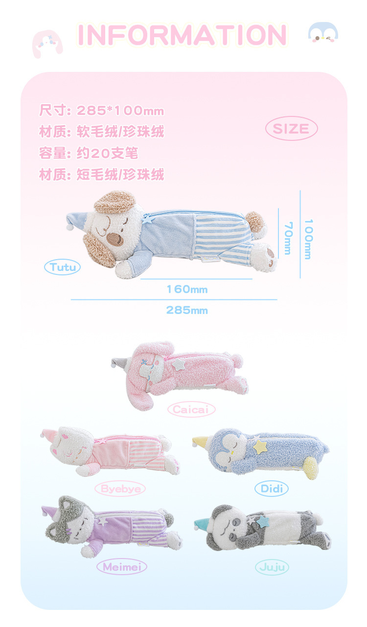 RosyPosy 소프트 세트 봉제 좋은 밤 연필 케이스 만화 인형 연필 케이스 학생 연필 케이스 귀여운 높은 색상 값