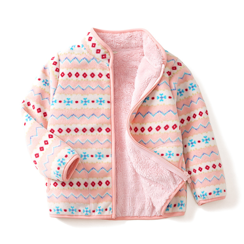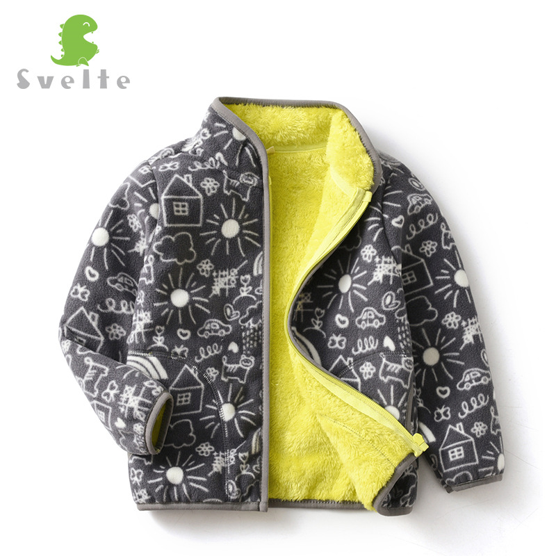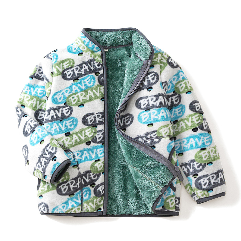 【160-180cm】대형 아동용 폴라 플리스 재킷 프린트 플러스 벨벳 두꺼운 스탠드 칼라 따뜻한 wy1088스토어 가기