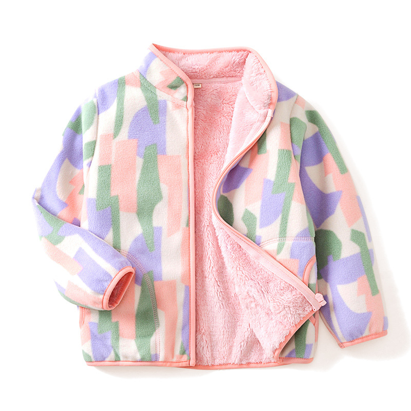 【160-180cm】대형 아동용 폴라 플리스 재킷 프린트 플러스 벨벳 두꺼운 스탠드 칼라 따뜻한 wy1088