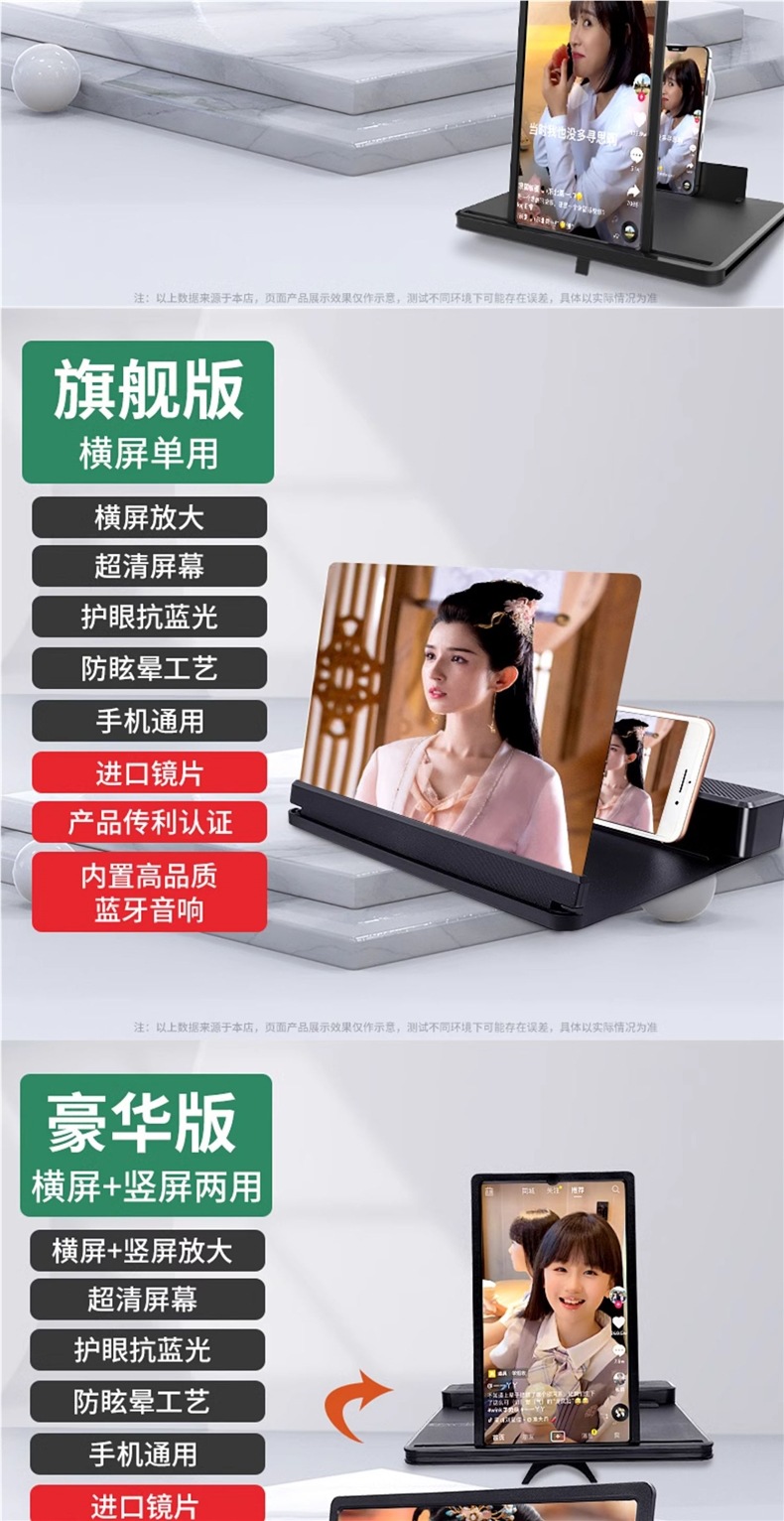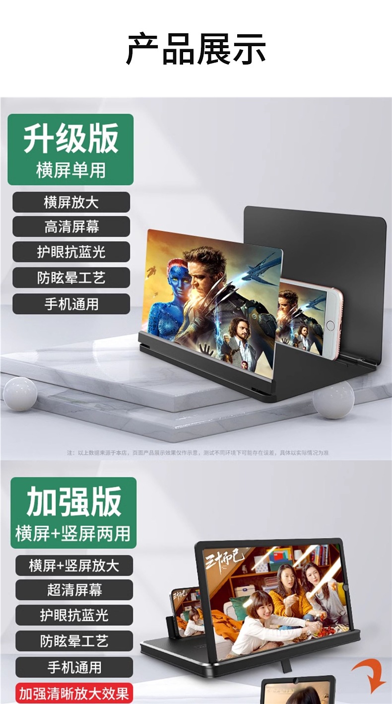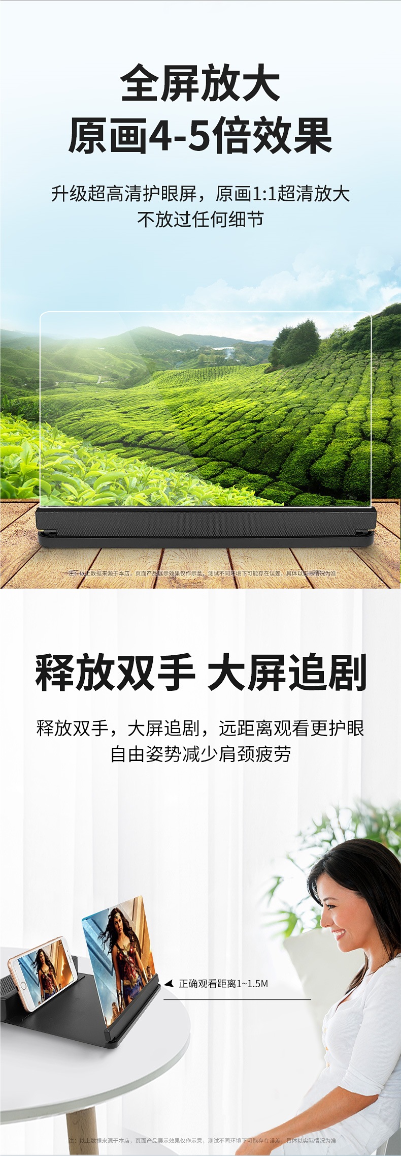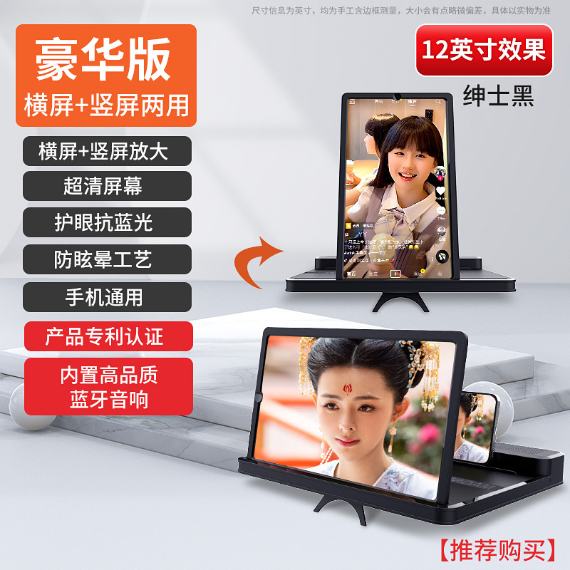 휴대 전화 화면 증폭기 대형 화면 울트라 클리어 눈 보호 HD 수평 및 수직 이중 사용 오디오 안티 블루 미러 데스크탑 드라마스토어 가기
