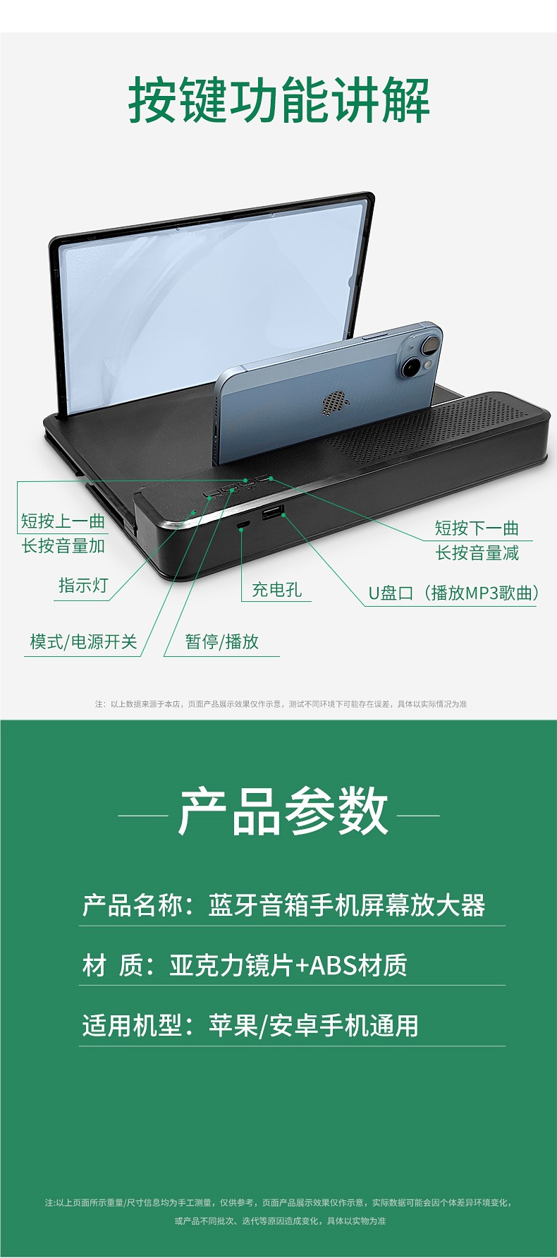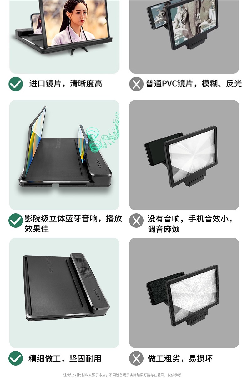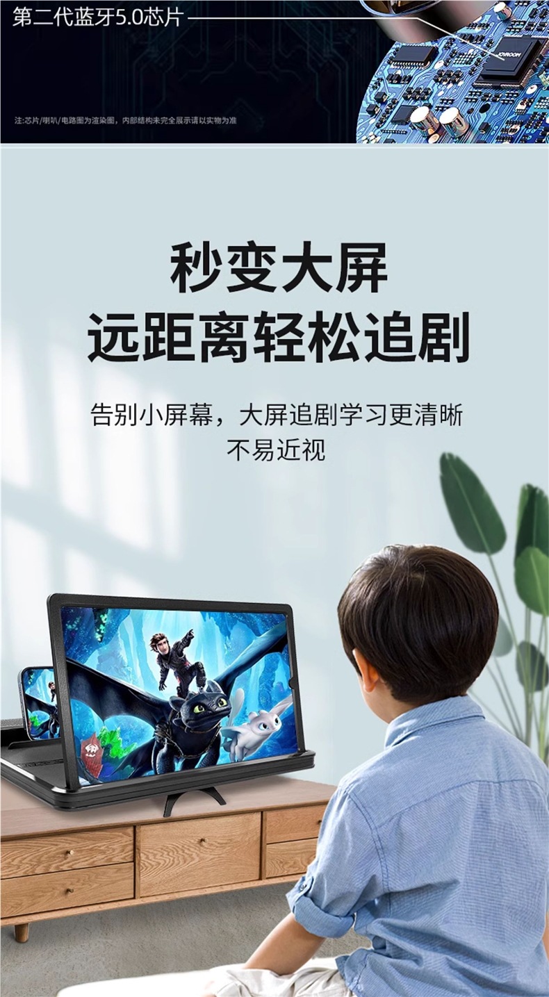 휴대 전화 화면 증폭기 대형 화면 울트라 클리어 눈 보호 HD 수평 및 수직 이중 사용 오디오 안티 블루 미러 데스크탑 드라마스토어 가기
