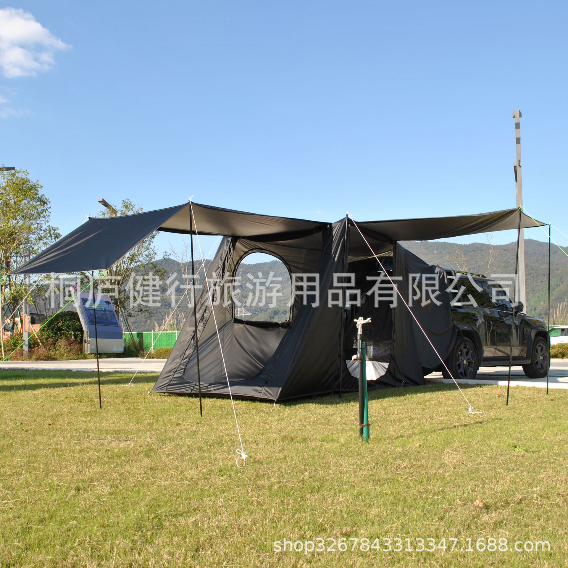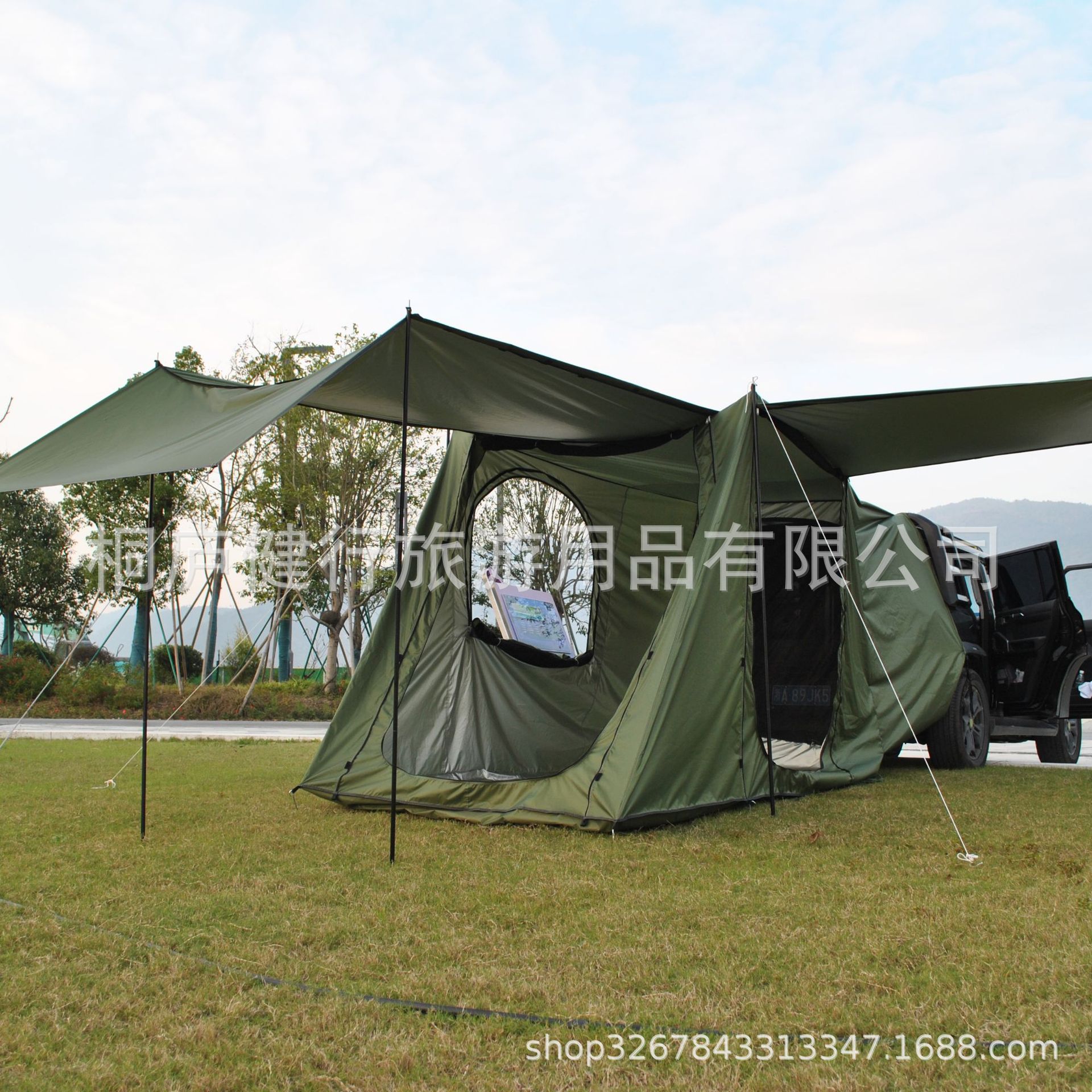 功能特点:这款帐篷单独使用是一个尺寸为300cm*200cm*210cm的加大版车尾车厢帐篷。适用尺寸厂3米,款2米,高2米,可以容下6个大人使用,并且正面开门侧面门也可以开门,一共2个门。同时后面如果可以直接连接在SUV车上和大部分汽车上,既可以脱离车尾作为单独家庭露营帐篷,也可以作为车尾帐篷车后帐篷。面料涂银防晒,防水指数高达PU4000,是防雨防晒的自驾游车尾帐篷优选。