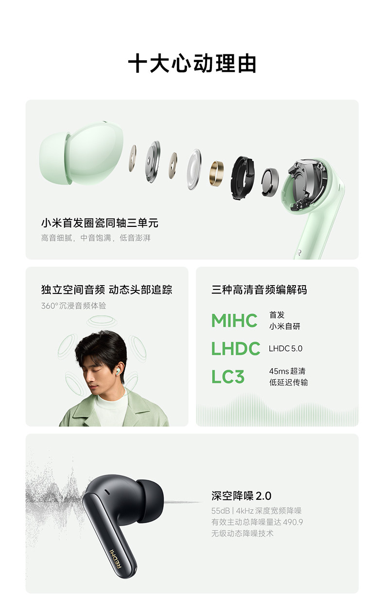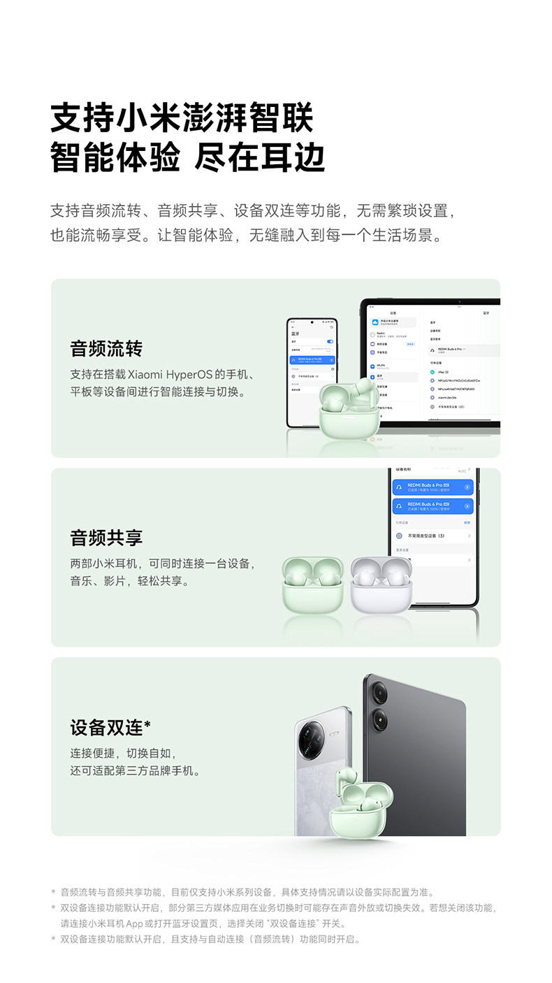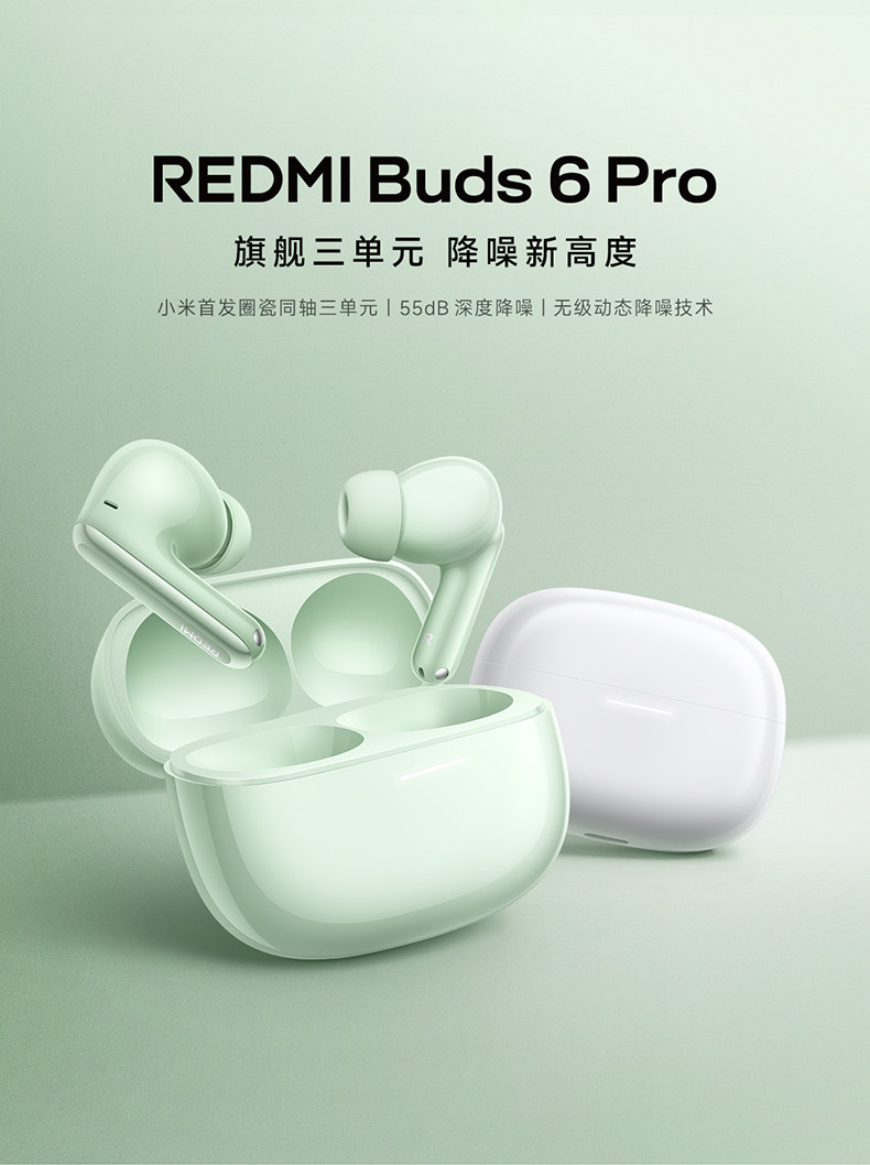 Redmi Buds6Pro 진정한 무선 소음 취소 헤드셋 52db 활성 소음 취소 휴대 전화 유니버설 24 년 새 헤드셋